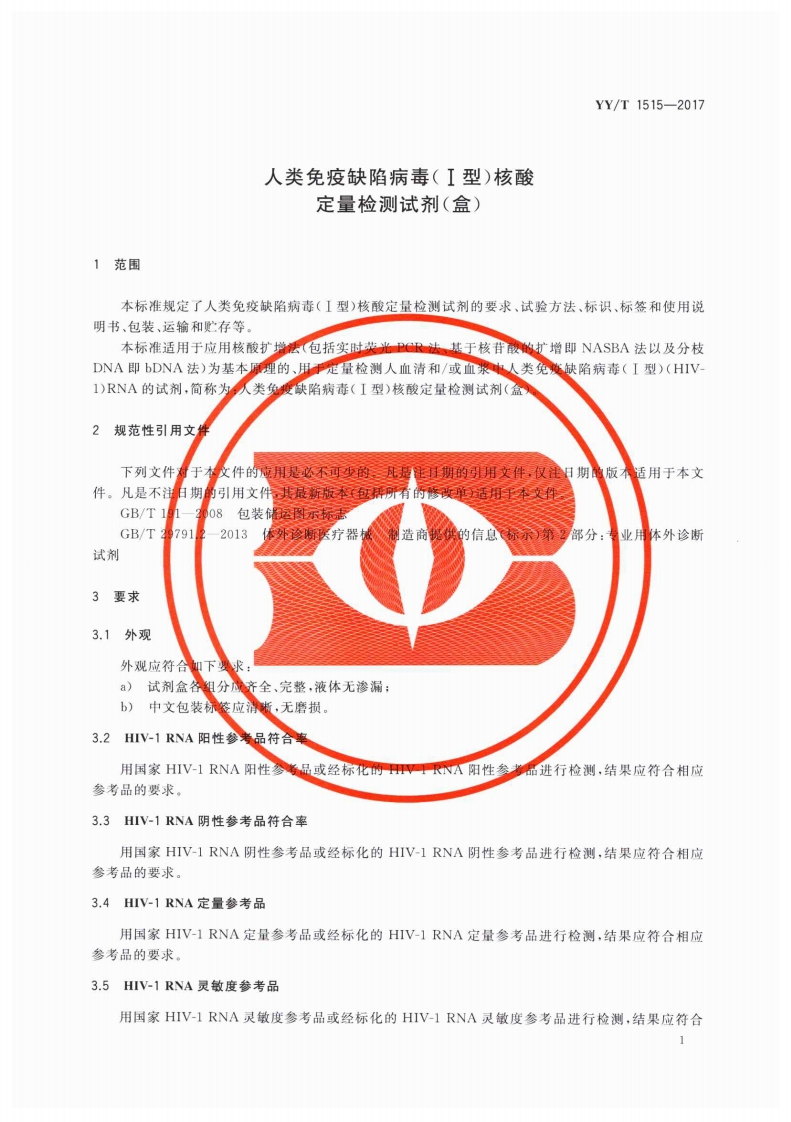 人类免疫缺陷病毒(1型)核酸定量检测试剂盒HIV-1RNA定量检测试剂348072@abc4天前发布关注私信1.08MB9页023人类免疫缺陷病毒(1型)核酸定量检测试剂盒HIV-1RNA定量检测试剂此内容为付费资源,请付费后查看¥13¥19黄金会员免费钻石会员免费立即购买您当前未登录!建议登陆后购买,可保存购买订单付费资源 第1页 / 共9页 第2页 / 共9页 第3页 / 共9页 第4页 / 共9页 第5页 / 共9页 试读已结束,还剩4页,您可下载完整版后进行离线阅读 THE END标准规范 文本预览 1361CS11.100C44YY中华人民共和国医药行业标准YY/T1515-2017人类免疫缺陷病毒(Ⅰ型)核酸定量检测试剂(盒)HIV-1 RNA quantitative assay2017-05-02发布2018-04-01实施国家食品药品监督管理总局发布 查看更多 收起部分 喜欢就支持一下吧收藏