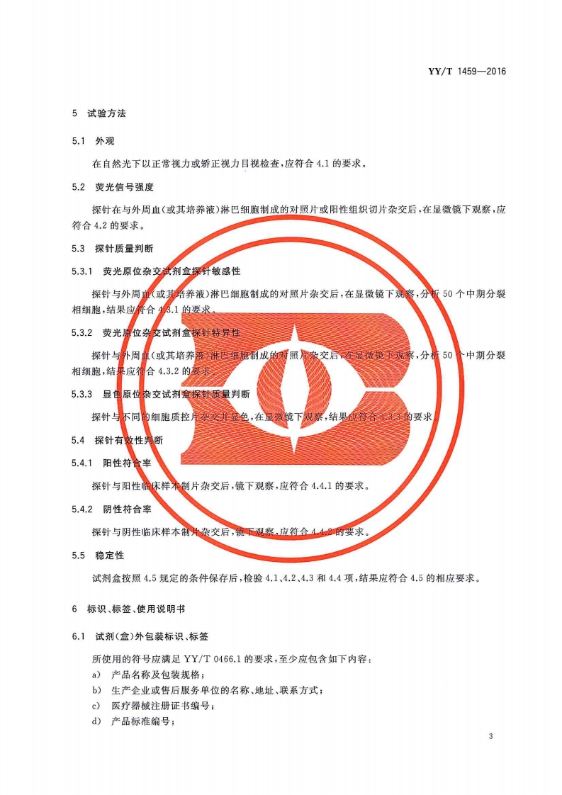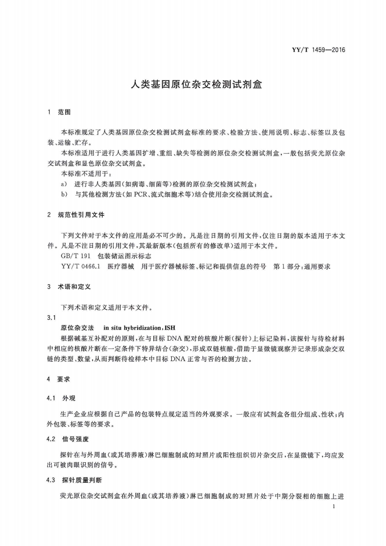 人类基因原位杂交检测试剂盒Humangeneinsituhybridizationdetectionkit348072@abc4天前发布关注私信1.36MB9页039人类基因原位杂交检测试剂盒Humangeneinsituhybridizationdetectionkit此内容为付费资源,请付费后查看¥13¥19黄金会员免费钻石会员免费立即购买您当前未登录!建议登陆后购买,可保存购买订单付费资源 第1页 / 共9页 第2页 / 共9页 第3页 / 共9页 第4页 / 共9页 第5页 / 共9页 试读已结束,还剩4页,您可下载完整版后进行离线阅读 THE END标准规范 文本预览 C41.1oYY中华人民共和国医药行业标准YY/T1459-2016人类基因原位杂交检测试剂盒Human gene in situ hybridization detection kit2016-01-26发布2017-01-01实施国家食品药品监督管理总局发布Φ 查看更多 收起部分 喜欢就支持一下吧收藏