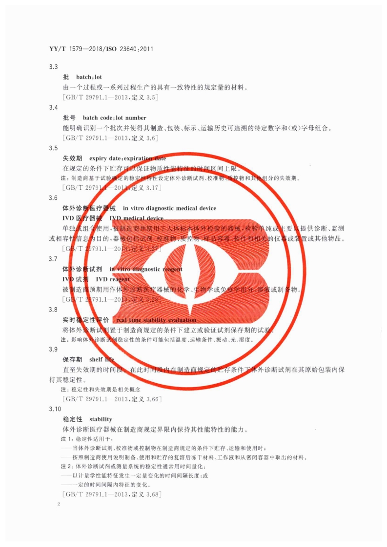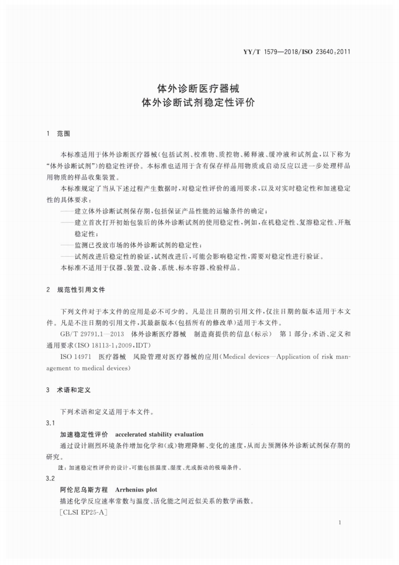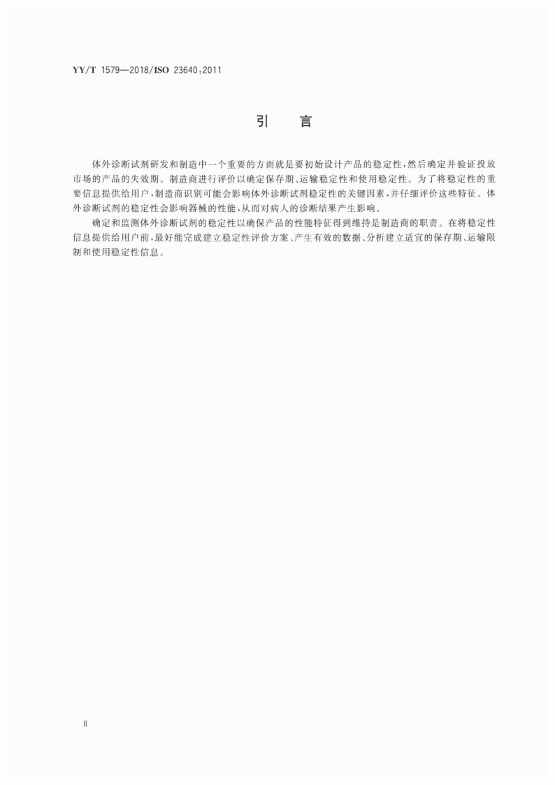 1CS11.100C44YY中华人民共和国医药行业标准YY/T1579-2018/IS023640:2011体外诊断医疗器械体外诊断试剂稳定性评价In vitro diagnostic medical devices-Evaluation of stability of in vitro diagnostic reagents(ISO23640:2011,IDT)2018-02-24发布2019-03-01实施国家食品药品监督管理总局发布