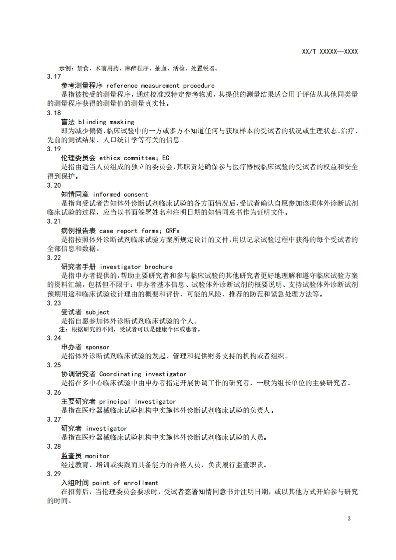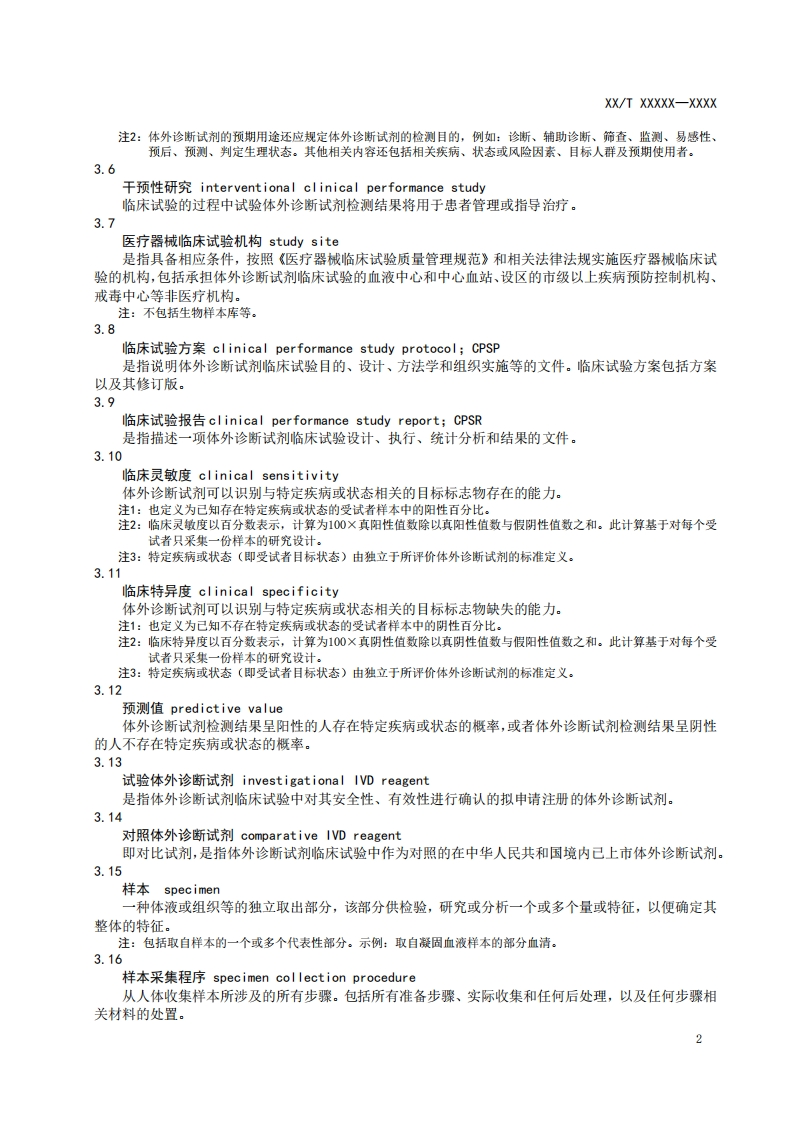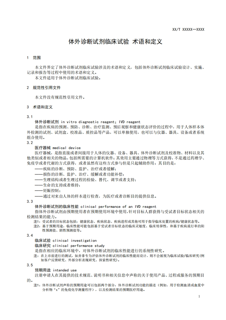 ICS点击此处添加ICS号CCS点击此处添加C0s号YY中华人民共和国医药行业标准XX/T XXXXX一XXXX体外诊断试剂临床试验术语和定义Clinical performance studies of In vitro diagnostic reagent-Terms and definitions(征求意见稿)(本草案完成时间:2022.8.5)在提交反馈意见时,请将您知道的相关专利连同支持性文件一并附上。XXXX-Xx-XX发布XXXX-Xx-XX实施国家药品监督管理局发布
