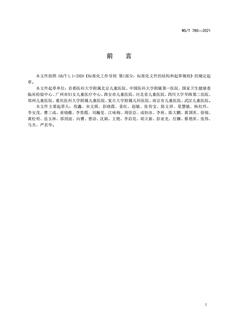 儿童临床常用生化检验项目参考区间Referenceintervalsofclinicalbiochemistrytestscommonlyusedforchildren348072@abc6天前发布关注私信0.42MB13页048儿童临床常用生化检验项目参考区间Referenceintervalsofclinicalbiochemistrytestscommonlyusedforchildren此内容为付费资源,请付费后查看¥13¥19黄金会员免费钻石会员免费立即购买您当前未登录!建议登陆后购买,可保存购买订单付费资源 第1页 / 共13页 第2页 / 共13页 第3页 / 共13页 第4页 / 共13页 第5页 / 共13页 试读已结束,还剩8页,您可下载完整版后进行离线阅读 THE END标准规范 文本预览 ICS11.020CCS C 50WS中华人民共和国卫生行业标准WS/T780-2021儿童临床常用生化检验项目参考区间Reference intervals of clinical biochemistry tests commonly used for children2021-04-09发布2021-10-01实施中华人民共和国国家卫生健康委员会发布 查看更多 收起部分 喜欢就支持一下吧收藏