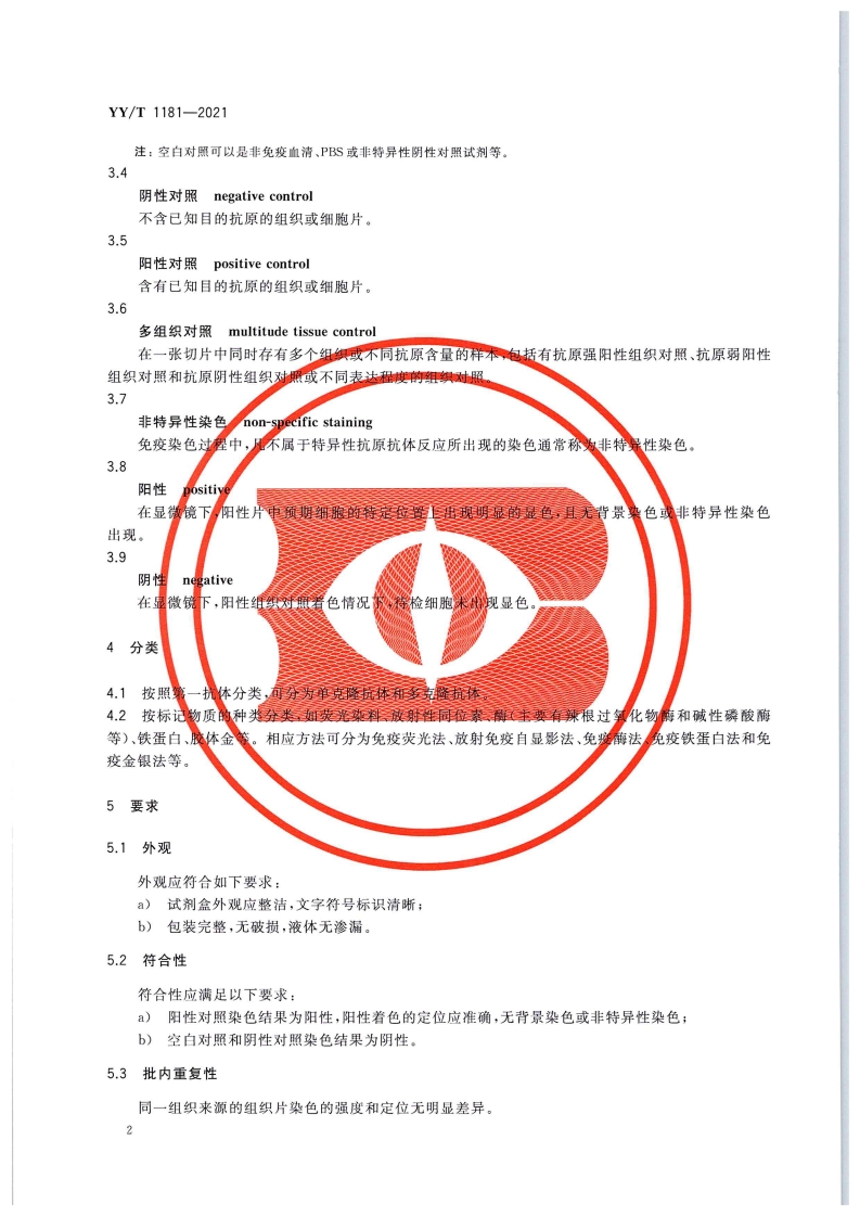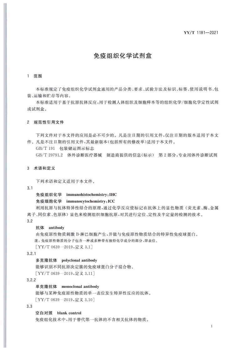 免疫组化试剂盒Immunohistochemicalkit1348072@abc7天前发布关注私信3.09MB10页049免疫组化试剂盒Immunohistochemicalkit1此内容为付费资源,请付费后查看¥13¥19黄金会员免费钻石会员免费立即购买您当前未登录!建议登陆后购买,可保存购买订单付费资源 第1页 / 共10页 第2页 / 共10页 第3页 / 共10页 第4页 / 共10页 第5页 / 共10页 试读已结束,还剩5页,您可下载完整版后进行离线阅读 THE END标准规范 文本预览 ICS11.100.10C44YY中华人民共和国医药行业标准YY/T1181-2021代替YY/T1181-2010免疫组织化学试剂盒Immunohistochemistry kit2021-09-06发布2023-03-01实施国家药品监督管理局发布Φ利查真 查看更多 收起部分 喜欢就支持一下吧收藏