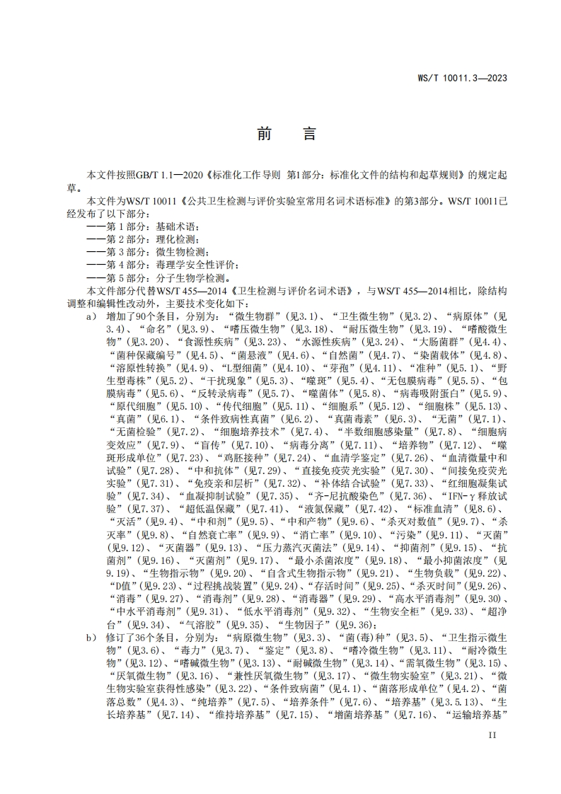 ICS11.020CCS C 61WS中华人民共和国卫生行业标准WS/T10011.3-2023部分代替WS/T455-2014公共卫生检测与评价实验室常用名词术语标准第3部分:微生物检测Standard of terms commonly used in public health testing and evaluation laboratoriesPart 3:Microorganism detection2023-12-15发布2024-05-01实施国家疾病预防控制局发布