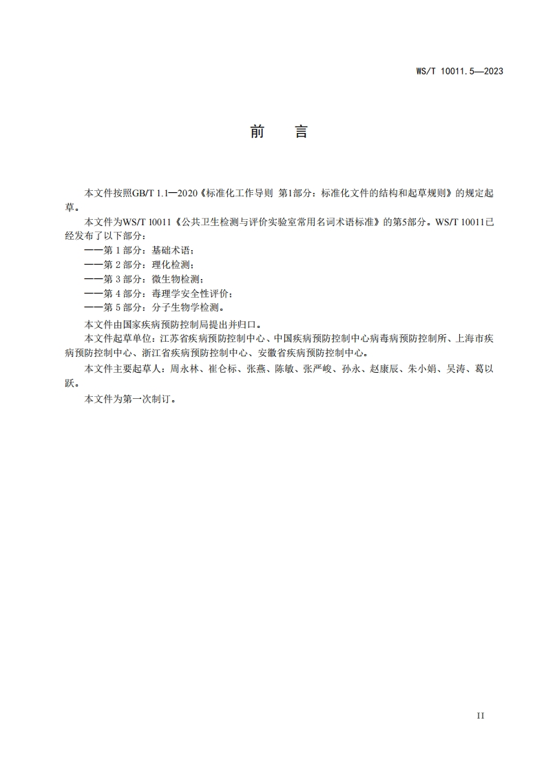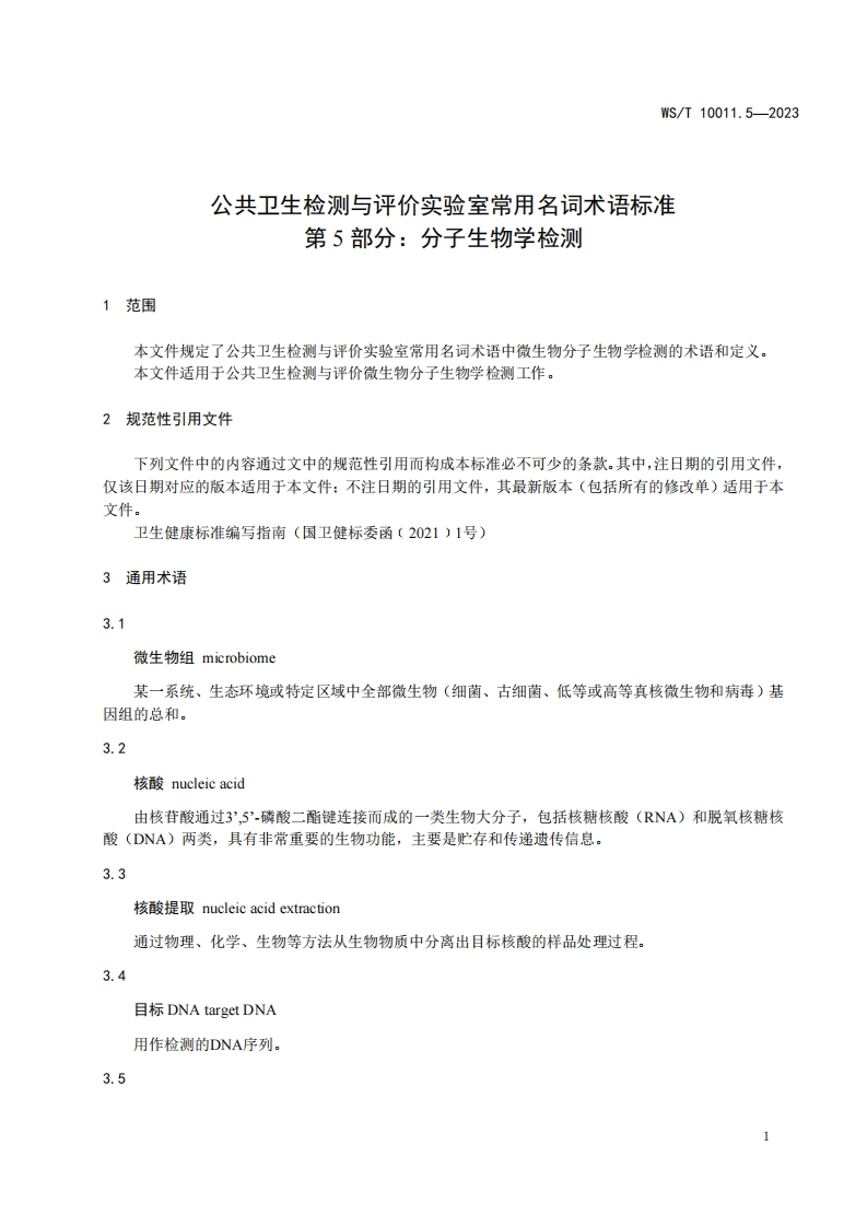 ICS11.020CCS C 61WS中华人民共和国卫生行业标准WS/T10011.5—2023公共卫生检测与评价实验室常用名词术语标准第5部分:分子生物学检测Standard of terms commonly used in public health testing and evaluation laboratoriesPart 5:Molecular biology detection2023-12-15发布2024-05-01实施国家疾病预防控制局发布