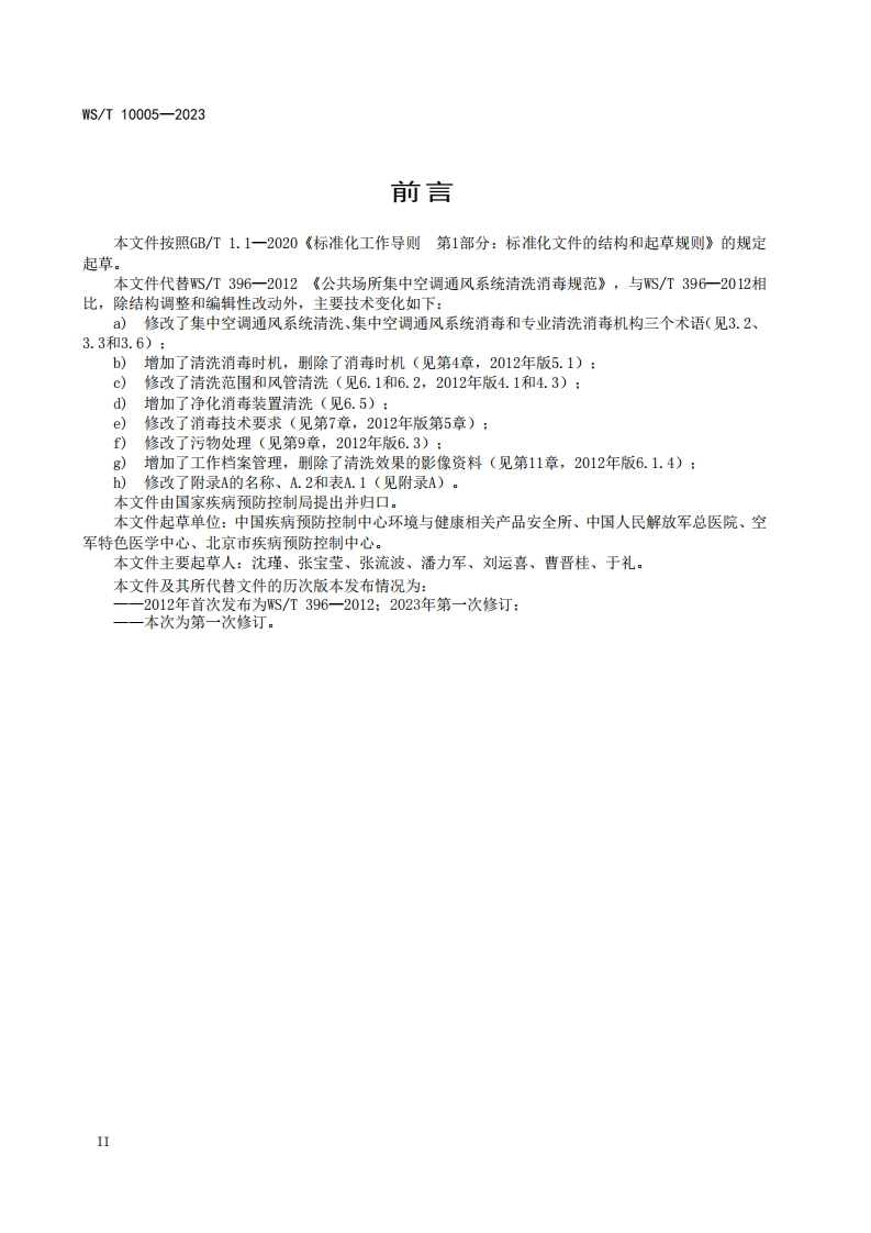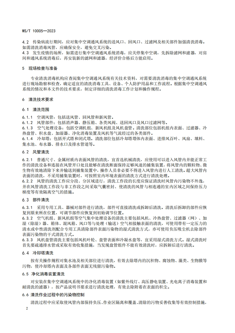 ICS11.080CCS C 51WS中华人民共和国卫生行业标准WS/T10005—2023代替S/T396—2012公共场所集中空调通风系统清洗消毒规范Specification of cleaning and disinfecting for central air conditioning ventilationsystem in public places2023-12-15发布2024-05-01实施国家疾病预防控制局发布