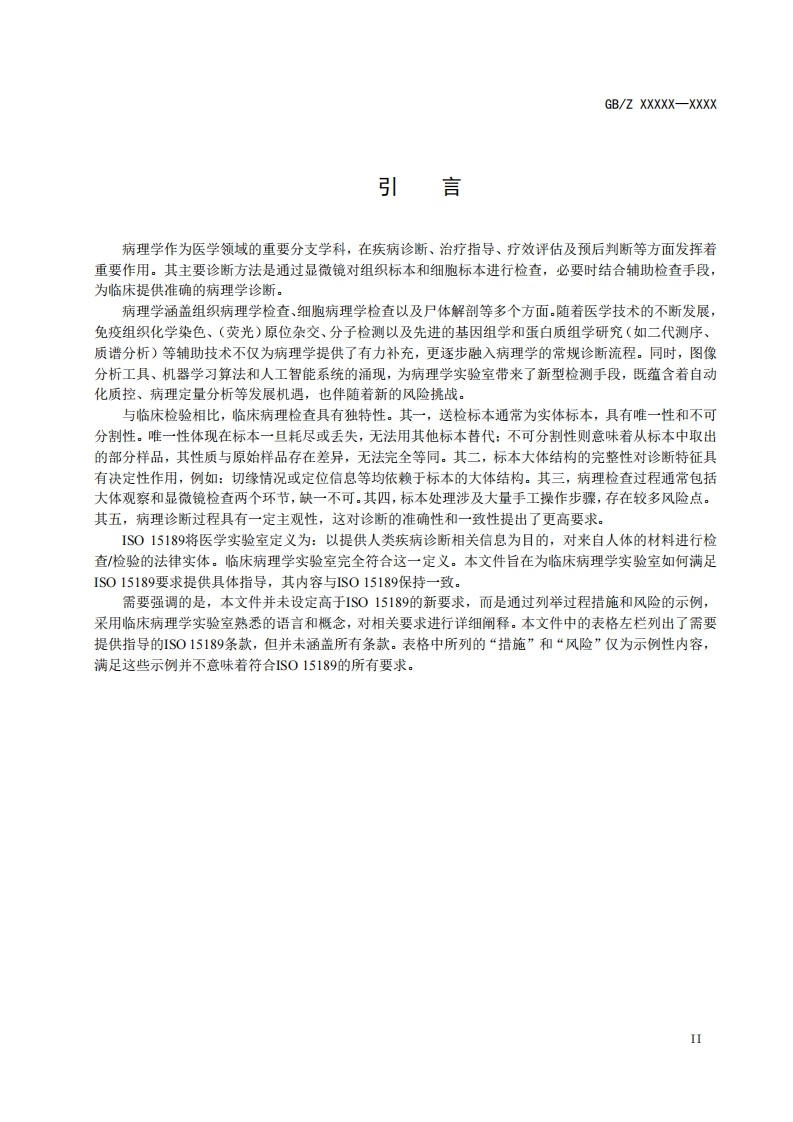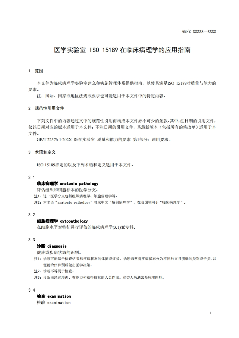 ICS点击此处添加ICS号CCS点击此处添加CCS号B中华人民共和国国家标准GB/ZXXXXX一XXXX医学实验室1S015189在临床病理学的应用指南Medical laboratories-Guidance on Application ofISO 15189 in Anatomic PathologyIS0/TS23824,DT)(征求意见稿)在提交反债意见时,请将您知道的相关专利连同支持性文件一并附上。XXXX-Xx-XX发布XXXX-x-XX实施国家市场监督管理总局发布国家标准化管理委员会