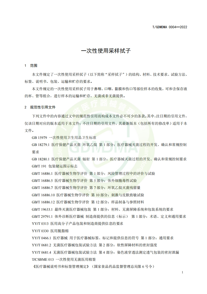 医用器械一次性使用取样拭子一次性拭子GDMDMA348072@abc7天前发布关注私信0.72MB16页044医用器械一次性使用取样拭子一次性拭子GDMDMA此内容为付费资源,请付费后查看¥13¥19黄金会员免费钻石会员免费立即购买您当前未登录!建议登陆后购买,可保存购买订单付费资源 第1页 / 共16页 第2页 / 共16页 第3页 / 共16页 第4页 / 共16页 第5页 / 共16页 试读已结束,还剩11页,您可下载完整版后进行离线阅读 THE END标准规范 文本预览 ICS11.040.99CCS C30T/GDMDMA广东省医疗器械管理学会团体标准T/GDMDMA 0004-2022医疗器械一次性使用采样拭子Disposable SwabGOMDMAeueW Seol4e2022-08-22发布2022-08-22实施广东省医疗器械管理学会发布 查看更多 收起部分 喜欢就支持一下吧收藏