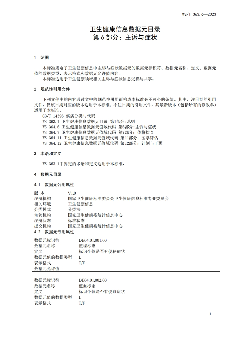 医疗卫生健康信息数据元清单第6部分_主要诉求与症状医疗卫生健康数据元素字典第6部分_主要诉求与症状348072@abc7天前发布关注私信0.26MB31页023医疗卫生健康信息数据元清单第6部分_主要诉求与症状医疗卫生健康数据元素字典第6部分_主要诉求与症状此内容为付费资源,请付费后查看¥13¥19黄金会员免费钻石会员免费立即购买您当前未登录!建议登陆后购买,可保存购买订单付费资源 第1页 / 共31页 第2页 / 共31页 第3页 / 共31页 第4页 / 共31页 第5页 / 共31页 试读已结束,还剩26页,您可下载完整版后进行离线阅读 THE END标准规范 文本预览 ICS11.020CCS C 07WS中华人民共和国卫生行业标准WS/T363.6—2023代替WS363.6-2011卫生健康信息数据元目录第6部分:主诉与症状Health data element dictionary-Part 6:Chief complaint and symptom2023-10-07发布2024-04-01实施中华人民共和国国家卫生健康委员会发布 查看更多 收起部分 喜欢就支持一下吧收藏