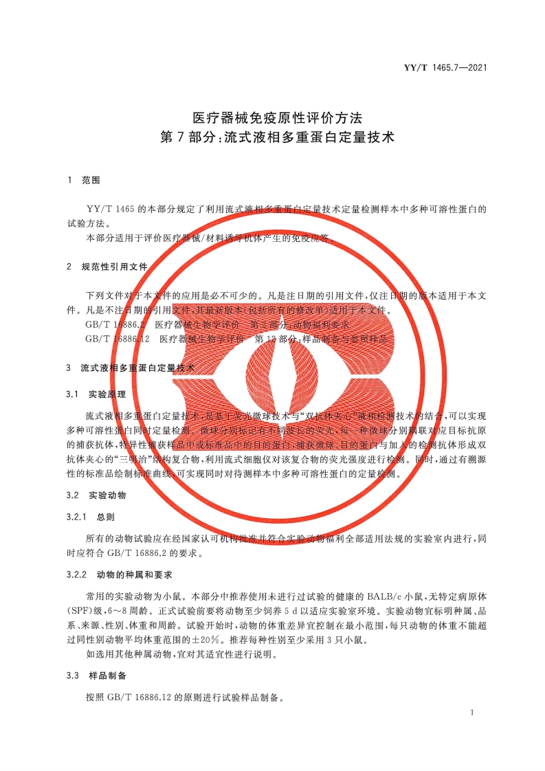 1CS11.100.20C30YY中华人民共和国医药行业标准YY/T1465.7-2021医疗器械免疫原性评价方法第7部分:流式液相多重蛋白定量技术Immunogenic evaluation method of medical devices-Part 7:Liquid phase multiplex protein quantification technique by flow cytometry2021-03-09发布2022-04-01实施国家药品监督管理局发布