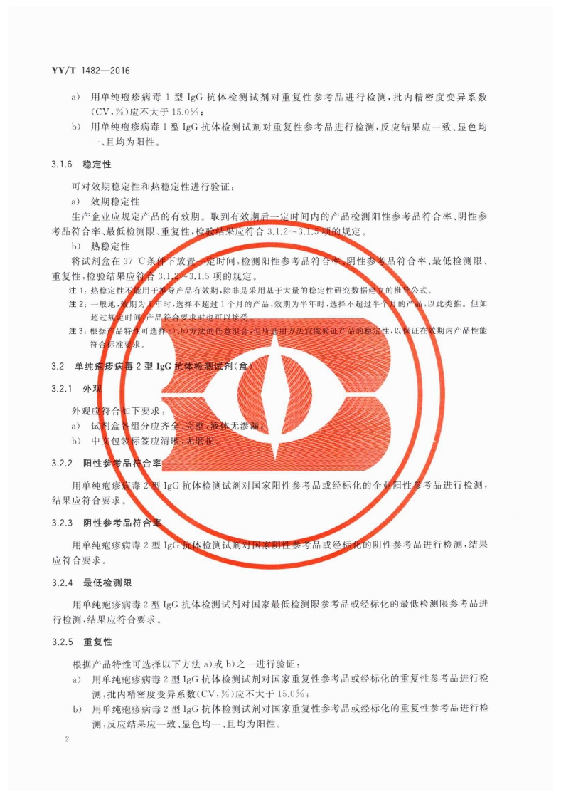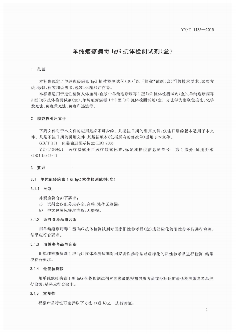 单纯疱疹病毒免疫球蛋白G抗体检测试剂(盒)Anti-HerpessimplexvirusImmunoglobulinGantibodydetectionreagent(kit)348072@abc7天前发布关注私信1.56MB11页037单纯疱疹病毒免疫球蛋白G抗体检测试剂(盒)Anti-HerpessimplexvirusImmunoglobulinGantibodydetectionreagent(kit)此内容为付费资源,请付费后查看¥13¥19黄金会员免费钻石会员免费立即购买您当前未登录!建议登陆后购买,可保存购买订单付费资源 第1页 / 共11页 第2页 / 共11页 第3页 / 共11页 第4页 / 共11页 第5页 / 共11页 试读已结束,还剩6页,您可下载完整版后进行离线阅读 THE END标准规范 文本预览 ICS11.100C44YY中华人民共和国医药行业标准YY/T1482-2016单纯疱疹病毒IgG抗体检测试剂(盒)Anti-herpes-simplex-virus IgG antibody detection reageant (kit)2016-07-29发布2017-06-01实施国家食品药品监督管理总局发布 查看更多 收起部分 喜欢就支持一下吧收藏