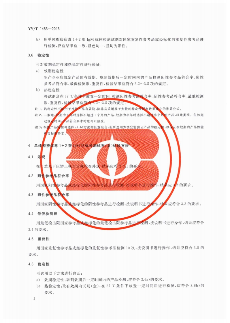 单纯疱疹病毒免疫球蛋白M抗体检测试剂(盒)抗单纯疱疹病毒免疫球蛋白M抗体检测试剂(盒)348072@abc7天前发布关注私信1.04MB8页034单纯疱疹病毒免疫球蛋白M抗体检测试剂(盒)抗单纯疱疹病毒免疫球蛋白M抗体检测试剂(盒)此内容为付费资源,请付费后查看¥13¥19黄金会员免费钻石会员免费立即购买您当前未登录!建议登陆后购买,可保存购买订单付费资源 第1页 / 共8页 第2页 / 共8页 第3页 / 共8页 第4页 / 共8页 第5页 / 共8页 试读已结束,还剩3页,您可下载完整版后进行离线阅读 THE END标准规范 文本预览 25yICS11.100C44YY中华人民共和国医药行业标准YY/T1483-2016单纯疱疹病毒IgM抗体检测试剂(盒)Anti-herpes-simplex-virus IgM antibody detection reageant(kit)2016-07-29发布2017-06-01实施国家食品药品监督管理总局发布利保据磨真 查看更多 收起部分 喜欢就支持一下吧收藏