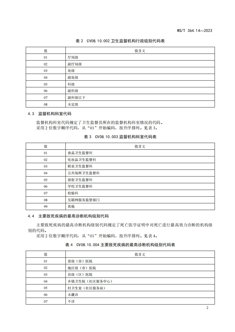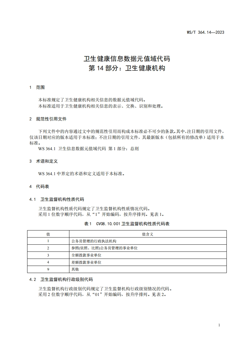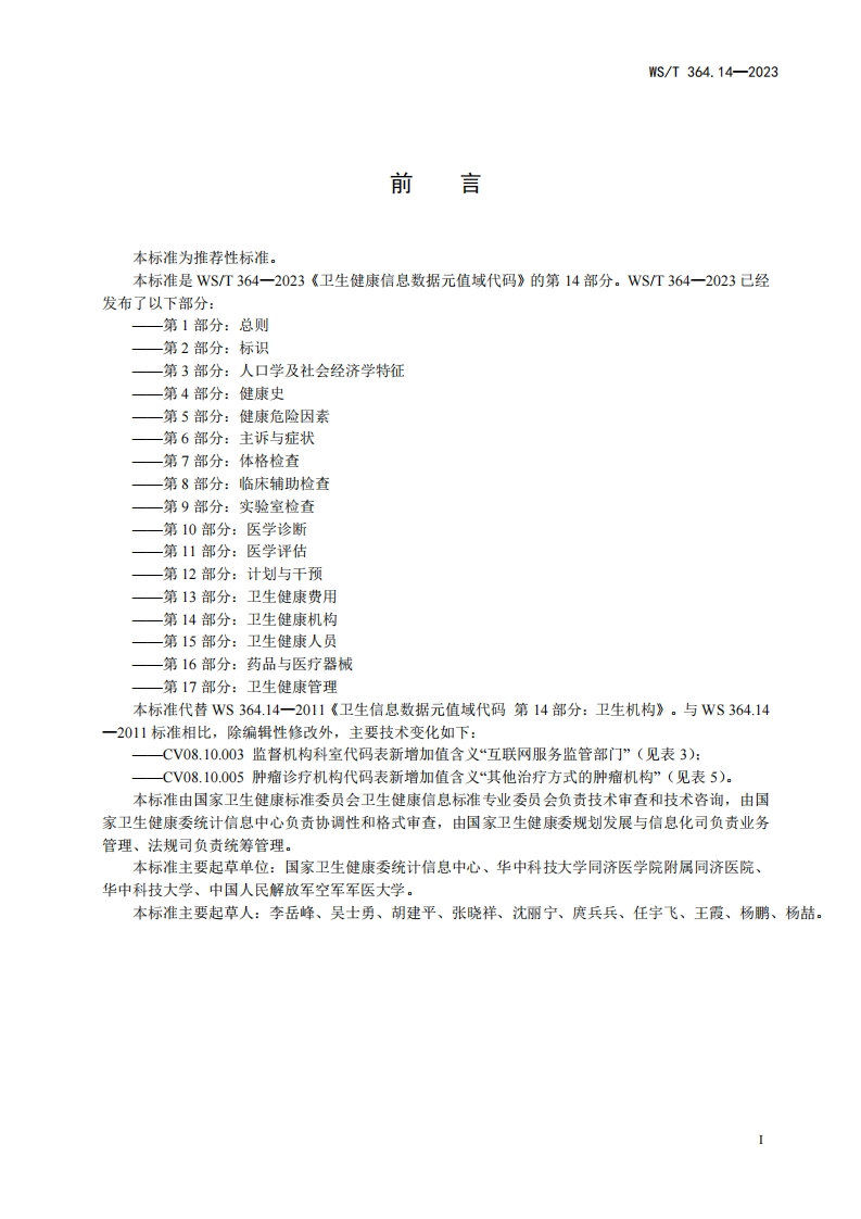 卫生健康信息数据元值域代码第14部分_卫生健康机构CodingstandardforvaluedomainofhealthdataelementPart14_Healthcareorganization348072@abc7天前发布关注私信0.17MB5页029卫生健康信息数据元值域代码第14部分_卫生健康机构CodingstandardforvaluedomainofhealthdataelementPart14_Healthcareorganization此内容为付费资源,请付费后查看¥13¥19黄金会员免费钻石会员免费立即购买您当前未登录!建议登陆后购买,可保存购买订单付费资源 第1页 / 共5页 第2页 / 共5页 第3页 / 共5页 第4页 / 共5页 第5页 / 共5页 已完成全部阅读,共5页 THE END标准规范 文本预览 ICS11.020CCS C 07WS中华人民共和国卫生行业标准WS/T364.14-2023代替Ws364.14-2011卫生健康信息数据元值域代码第14部分:卫生健康机构Coding standard for value domain of health data element-Part 14:Healthcare organization2023-10-07发布2024-04-01实施中华人民共和国国家卫生健康委员会发布 查看更多 收起部分 喜欢就支持一下吧收藏