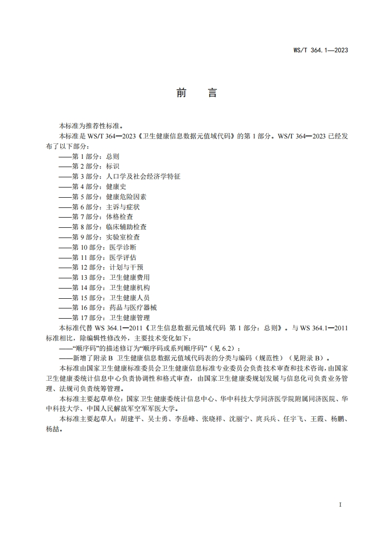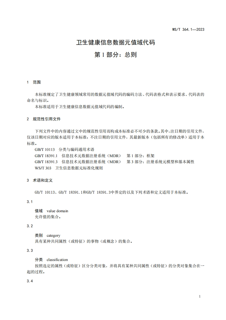 卫生健康信息数据元值域代码第1部分_总则CodingstandardforvaluedomainofhealthdataelementPart1_Generalspecification348072@abc7天前发布关注私信0.23MB10页040卫生健康信息数据元值域代码第1部分_总则CodingstandardforvaluedomainofhealthdataelementPart1_Generalspecification此内容为付费资源,请付费后查看¥13¥19黄金会员免费钻石会员免费立即购买您当前未登录!建议登陆后购买,可保存购买订单付费资源 第1页 / 共10页 第2页 / 共10页 第3页 / 共10页 第4页 / 共10页 第5页 / 共10页 试读已结束,还剩5页,您可下载完整版后进行离线阅读 THE END标准规范 文本预览 ICS11.020CCS C 07WS中华人民共和国卫生行业标准WS/T364.1-2023代替WS364.1-2011卫生健康信息数据元值域代码第1部分:总则Coding standard for value domain of health data element-Part 1:General specification2023-10-07发布2024-04-01实施中华人民共和国国家卫生健康委员会发布 查看更多 收起部分 喜欢就支持一下吧收藏