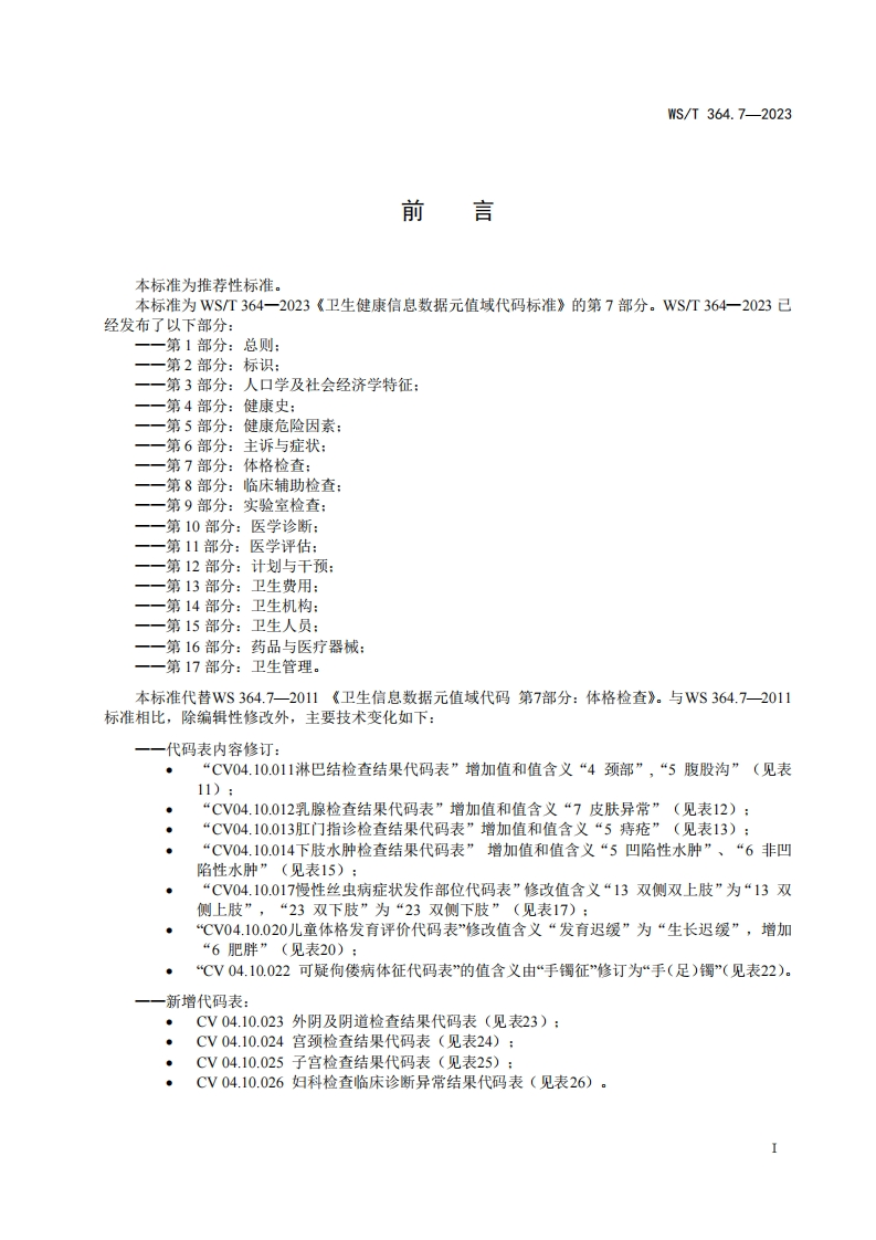 卫生健康信息数据元取值范围代码第7部分_身体检查348072@abc7天前发布关注私信0.22MB13页023卫生健康信息数据元取值范围代码第7部分_身体检查此内容为付费资源,请付费后查看¥13¥19黄金会员免费钻石会员免费立即购买您当前未登录!建议登陆后购买,可保存购买订单付费资源 第1页 / 共13页 第2页 / 共13页 第3页 / 共13页 第4页 / 共13页 第5页 / 共13页 试读已结束,还剩8页,您可下载完整版后进行离线阅读 THE END标准规范 文本预览 ICS11.020CCS C 07WS中华人民共和国卫生行业标准WS/T364.7-2023代替WS364.7-2011卫生健康信息数据元值域代码第7部分:体格检查Coding for value domain of health data element-Part 7:Physical examination2023-10-07发布2024-04-01实施中华人民共和国国家卫生健康委员会发布 查看更多 收起部分 喜欢就支持一下吧收藏