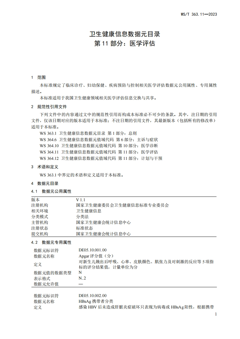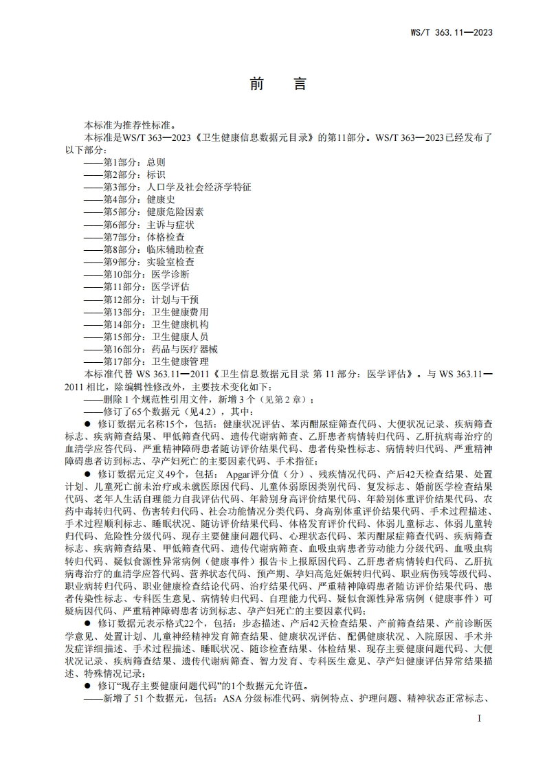 卫生健康信息数据元目录第11部分_医学评估HealthdataelementdictionaryPart11_Medicalassessment348072@abc8天前发布关注私信0.27MB33页047卫生健康信息数据元目录第11部分_医学评估HealthdataelementdictionaryPart11_Medicalassessment此内容为付费资源,请付费后查看¥13¥19黄金会员免费钻石会员免费立即购买您当前未登录!建议登陆后购买,可保存购买订单付费资源 第1页 / 共33页 第2页 / 共33页 第3页 / 共33页 第4页 / 共33页 第5页 / 共33页 试读已结束,还剩28页,您可下载完整版后进行离线阅读 THE END标准规范 文本预览 ICS11.020ccsC07WS中华人民共和国卫生行业标准WS/T363.11-2023代替Ws363.11-2011卫生健康信息数据元目录第11部分:医学评估Health data element dictionary-Part 11:Medical assessment2023-10-07发布2024-04-01实施中华人民共和国国家卫生健康委员会发布 查看更多 收起部分 喜欢就支持一下吧收藏
