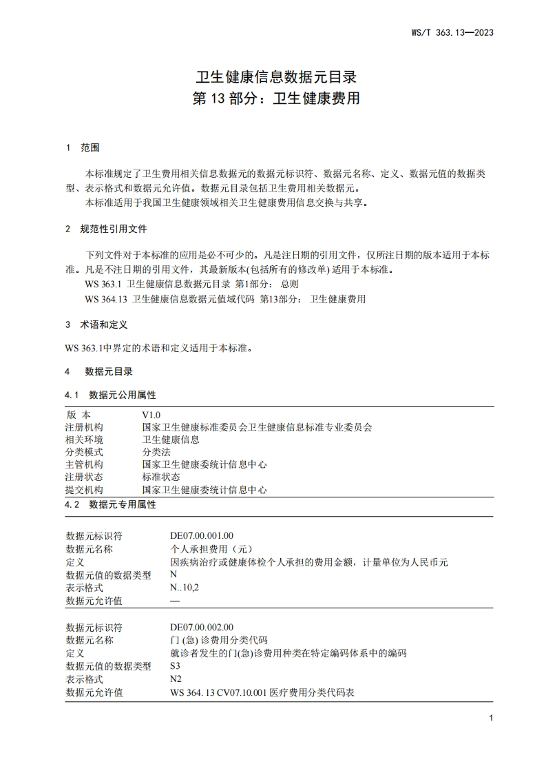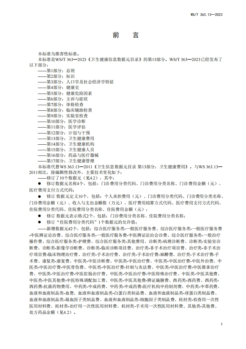 卫生健康信息数据元素目录第13部分卫生健康费用支出HealthdataelementdirectoryPart13Healthcarecosts348072@abc8天前发布关注私信0.20MB14页038卫生健康信息数据元素目录第13部分卫生健康费用支出HealthdataelementdirectoryPart13Healthcarecosts此内容为付费资源,请付费后查看¥13¥19黄金会员免费钻石会员免费立即购买您当前未登录!建议登陆后购买,可保存购买订单付费资源 第1页 / 共14页 第2页 / 共14页 第3页 / 共14页 第4页 / 共14页 第5页 / 共14页 试读已结束,还剩9页,您可下载完整版后进行离线阅读 THE END标准规范 文本预览 ICS11.020CCS C07WS中华人民共和国卫生行业标准WS/T363.13-2023代替WS363.13-2011卫生健康信息数据元目录第13部分:卫生健康费用Health data element dictionary-Part 13:Healthcare expenditure2023-10-07发布2024-04-01实施中华人民共和国国家卫生健康委员会发布 查看更多 收起部分 喜欢就支持一下吧收藏