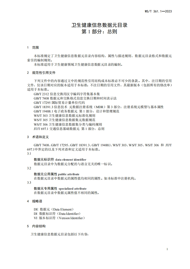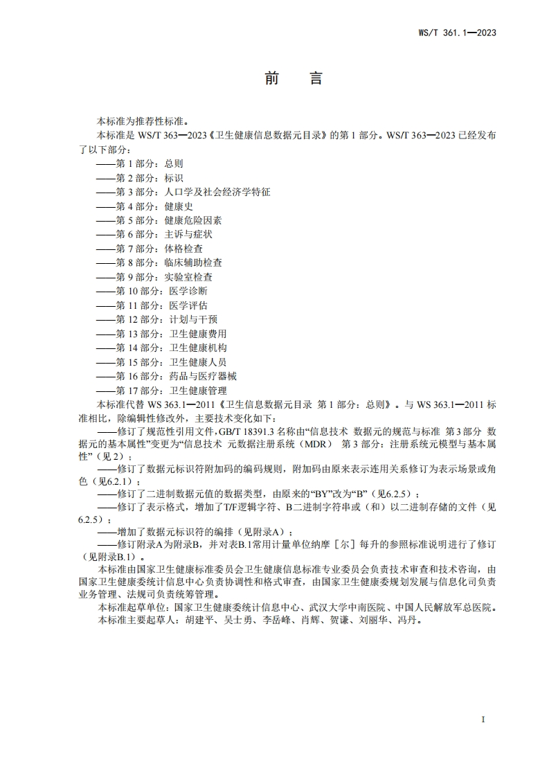 卫生健康信息数据元素目录第1部分总体规范348072@abc8天前发布关注私信0.27MB10页033卫生健康信息数据元素目录第1部分总体规范此内容为付费资源,请付费后查看¥13¥19黄金会员免费钻石会员免费立即购买您当前未登录!建议登陆后购买,可保存购买订单付费资源 第1页 / 共10页 第2页 / 共10页 第3页 / 共10页 第4页 / 共10页 第5页 / 共10页 试读已结束,还剩5页,您可下载完整版后进行离线阅读 THE END标准规范 文本预览 ICS11.020CCS C07WS中华人民共和国卫生行业标准WS/T363.1—2023代替WS363.1-2011卫生健康信息数据元目录第1部分:总则Health data element dictionary--Part 1:General specification2023-10-07发布2024-04-01实施中华人民共和国国家卫生健康委员会:发布 查看更多 收起部分 喜欢就支持一下吧收藏