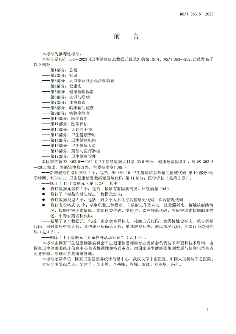 卫生健康信息数据元素目录第5部分:健康风险因素348072@abc8天前发布关注私信0.25MB21页028卫生健康信息数据元素目录第5部分:健康风险因素此内容为付费资源,请付费后查看¥13¥19黄金会员免费钻石会员免费立即购买您当前未登录!建议登陆后购买,可保存购买订单付费资源 第1页 / 共21页 第2页 / 共21页 第3页 / 共21页 第4页 / 共21页 第5页 / 共21页 试读已结束,还剩16页,您可下载完整版后进行离线阅读 THE END标准规范 文本预览 ICS11.020CCS C 07WS中华人民共和国卫生行业标准WS/T363.5—2023代替WS363.5-2011卫生健康信息数据元目录第5部分:健康危险因素Health data element dictionary-Part 5:Health risk factor2023-10-07发布2024-04-01实施中华人民共和国国家卫生健康委员会:发布 查看更多 收起部分 喜欢就支持一下吧收藏
