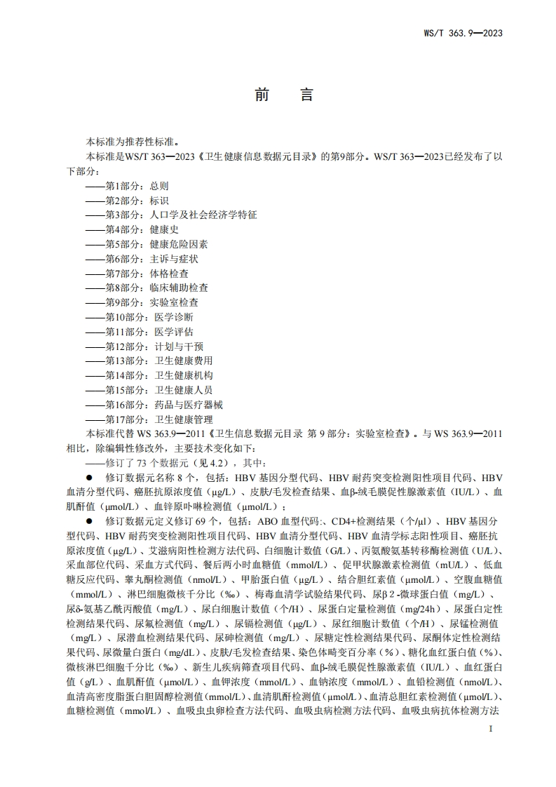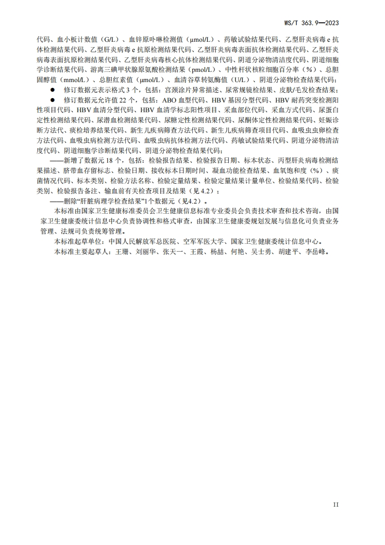 卫生健康信息数据元素目录第9部分实验室检验HealthdataelementdirectoryPart9Laboratorytest348072@abc8天前发布关注私信0.26MB32页031卫生健康信息数据元素目录第9部分实验室检验HealthdataelementdirectoryPart9Laboratorytest此内容为付费资源,请付费后查看¥13¥19黄金会员免费钻石会员免费立即购买您当前未登录!建议登陆后购买,可保存购买订单付费资源 第1页 / 共32页 第2页 / 共32页 第3页 / 共32页 第4页 / 共32页 第5页 / 共32页 试读已结束,还剩27页,您可下载完整版后进行离线阅读 THE END标准规范 文本预览 1CS11.020CCS C07WS中华人民共和国卫生行业标准WS/T363.9-2023代替Ws363.9-2011卫生健康信息数据元目录第9部分:实验室检查Health data element dictionary-Part9:Laboratory examination2023-10-07发布2024-04-01实施中华人民共和国国家卫生健康委员会发布 查看更多 收起部分 喜欢就支持一下吧收藏