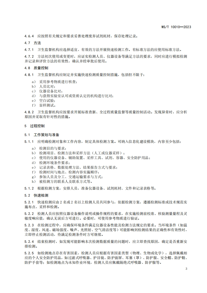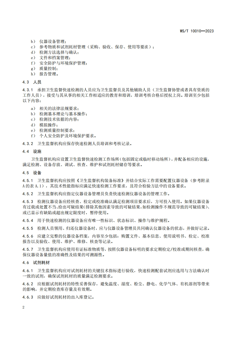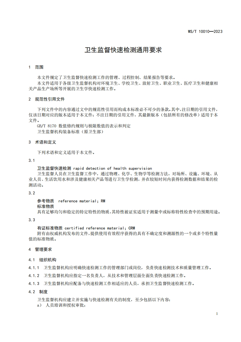 卫生监管快速检测通用规范Generalspecificationsforrapiddetectionofhealthsupervision348072@abc9天前发布关注私信0.58MB11页032卫生监管快速检测通用规范Generalspecificationsforrapiddetectionofhealthsupervision此内容为付费资源,请付费后查看¥13¥19黄金会员免费钻石会员免费立即购买您当前未登录!建议登陆后购买,可保存购买订单付费资源 第1页 / 共11页 第2页 / 共11页 第3页 / 共11页 第4页 / 共11页 第5页 / 共11页 试读已结束,还剩6页,您可下载完整版后进行离线阅读 THE END标准规范 文本预览 ICS11.020CCS C50WS中华人民共和国卫生行业标准WS/T10010—2023代替WS/T458一2014卫生监督快速检测通用要求General requirements for rapid detection of health supervision2023-12-15发布2024-05-01实施国家疾病预防控制局发布 查看更多 收起部分 喜欢就支持一下吧收藏