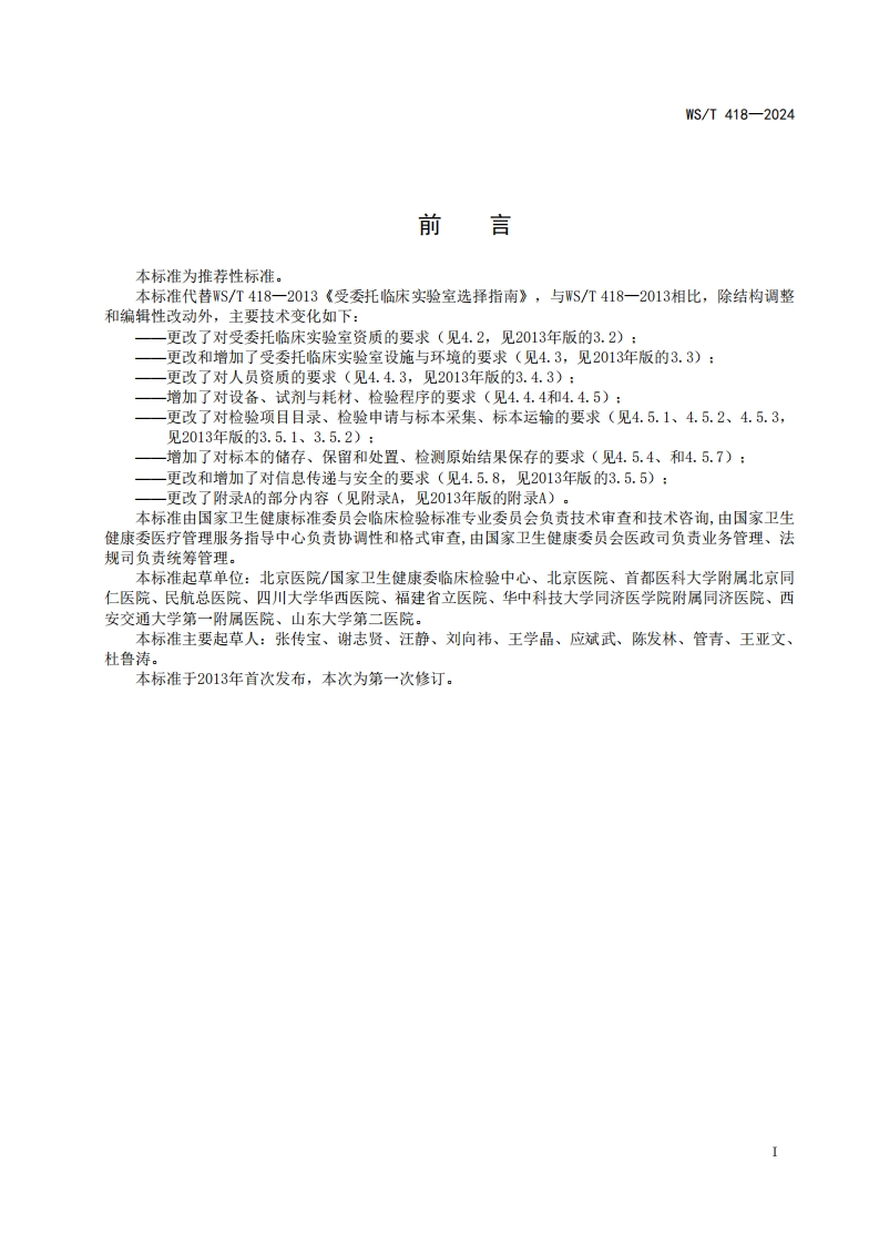 受委托医学实验室选择指南Guidelinefortheselectionofreferralmedicallaboratories348072@abc8天前发布关注私信0.27MB9页026受委托医学实验室选择指南Guidelinefortheselectionofreferralmedicallaboratories此内容为付费资源,请付费后查看¥13¥19黄金会员免费钻石会员免费立即购买您当前未登录!建议登陆后购买,可保存购买订单付费资源 第1页 / 共9页 第2页 / 共9页 第3页 / 共9页 第4页 / 共9页 第5页 / 共9页 试读已结束,还剩4页,您可下载完整版后进行离线阅读 THE END标准规范 文本预览 ICS11.020CCS C 50WS中华人民共和国卫生行业标准WS/T418-2024代替WS/T418一2013受委托医学实验室选择指南Guideline for the selection of referral medical laboratories2024-05-09发布2024-11-01实施中华人民共和国国家卫生健康委员会发布 查看更多 收起部分 喜欢就支持一下吧收藏