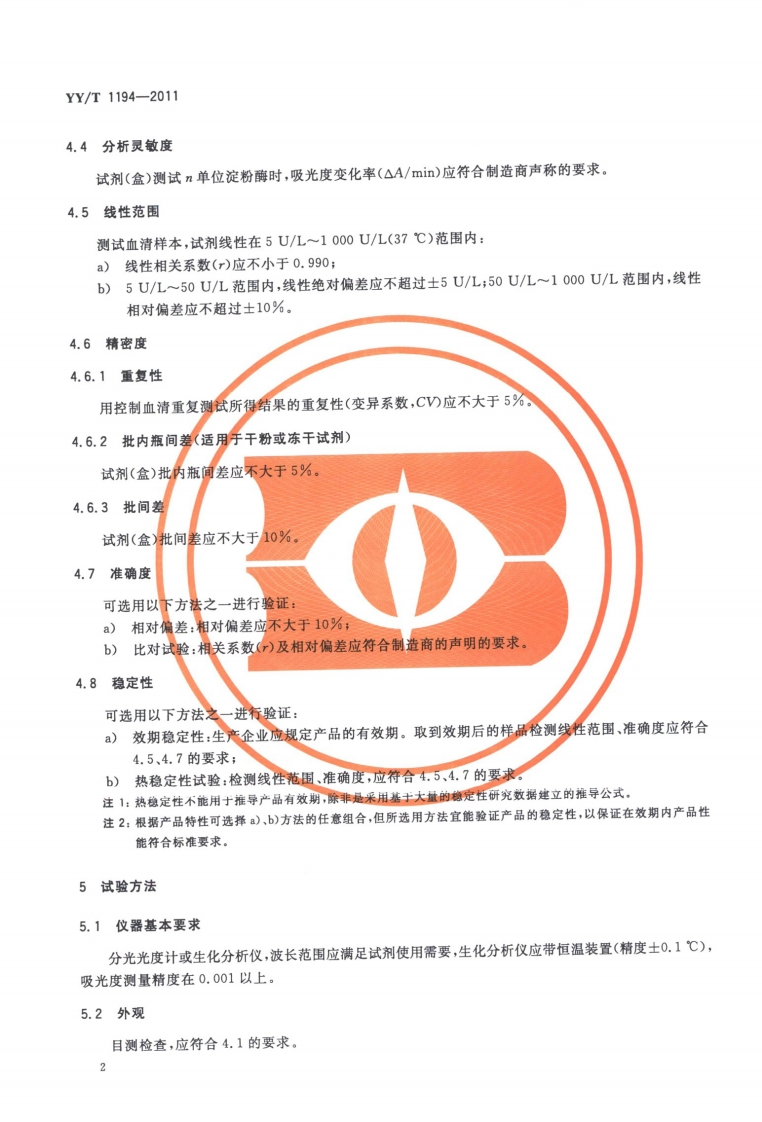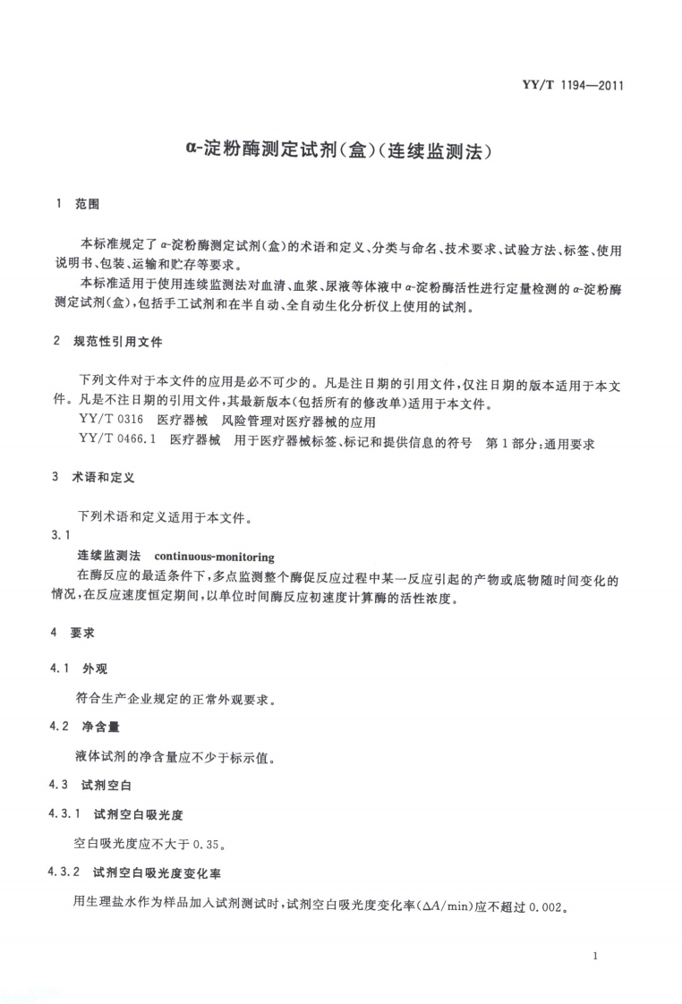 因原内容表意不明且存在难以理解的字符难以进行准确的伪原创你可以检查并补充清晰准确的文件名相关内容以便我为你完成伪原创348072@abc8天前发布关注私信4.03MB12页031因原内容表意不明且存在难以理解的字符难以进行准确的伪原创你可以检查并补充清晰准确的文件名相关内容以便我为你完成伪原创此内容为付费资源,请付费后查看¥13¥19黄金会员免费钻石会员免费立即购买您当前未登录!建议登陆后购买,可保存购买订单付费资源 第1页 / 共12页 第2页 / 共12页 第3页 / 共12页 第4页 / 共12页 第5页 / 共12页 试读已结束,还剩7页,您可下载完整版后进行离线阅读 THE END标准规范 文本预览 ICS11.100C44YY中华人民共和国医药行业标准YY/T1194-2011-淀粉酶测定试剂(盒)(连续监测法)a-Amylase test reagent(kit)(continuous-monitoring procedure)2011-12-31发布2013-06-01实施国家食品药品监督管理局发布数码防伪 查看更多 收起部分 喜欢就支持一下吧收藏