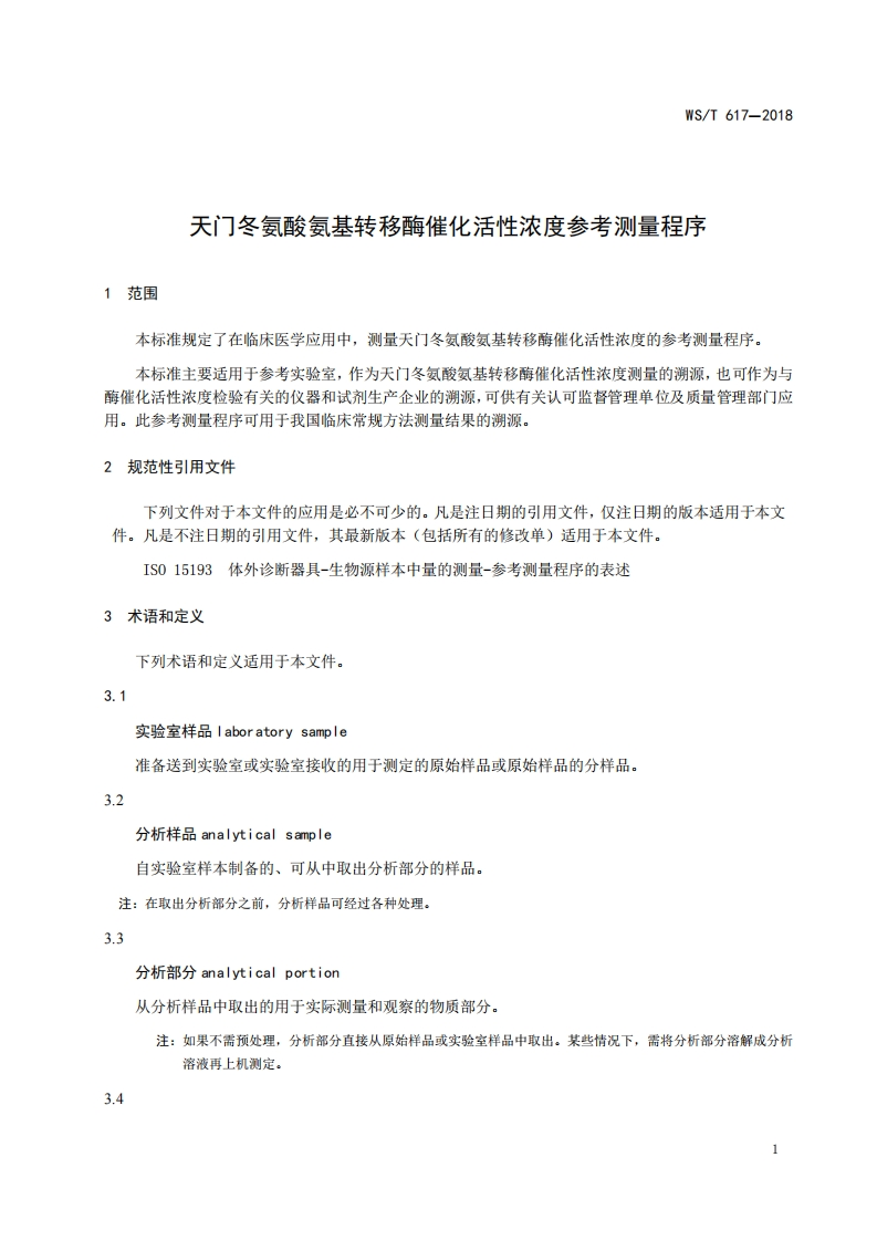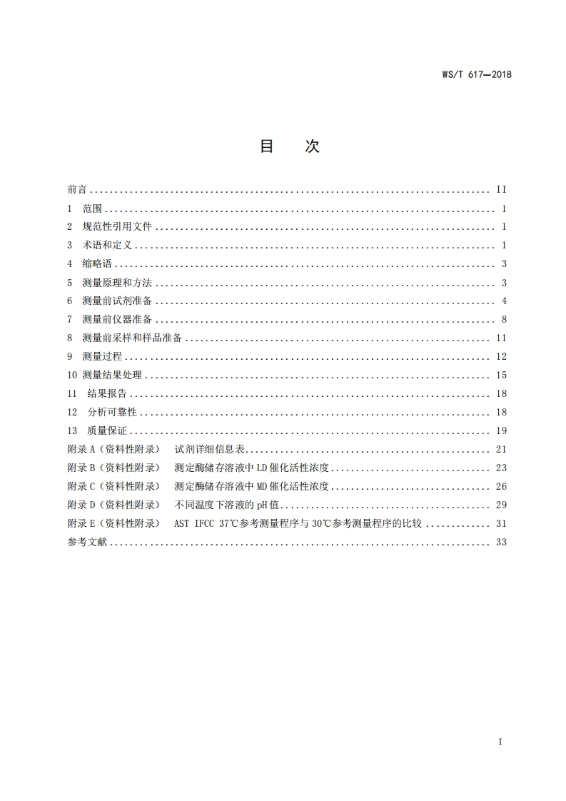 天门冬氨酸氨基转移酶催化活性浓度参考测量程序Referenceprocedureforthemeasurementofcatalyticactivityconcentrationofaspartateaminotransferase348072@abc8天前发布关注私信0.93MB36页040天门冬氨酸氨基转移酶催化活性浓度参考测量程序Referenceprocedureforthemeasurementofcatalyticactivityconcentrationofaspartateaminotransferase此内容为付费资源,请付费后查看¥13¥19黄金会员免费钻石会员免费立即购买您当前未登录!建议登陆后购买,可保存购买订单付费资源 第1页 / 共36页 第2页 / 共36页 第3页 / 共36页 第4页 / 共36页 第5页 / 共36页 试读已结束,还剩31页,您可下载完整版后进行离线阅读 THE END标准规范 文本预览 CS11.020C50WS中华人民共和国卫生行业标准WS/T617-2018天门冬氨酸氨基转移酶催化活性浓度参考测量程序Reference procedure for the measurement of catalytic activity concentration ofaspartate aminotransferase2018-08-20发布2019-03-01实施中华人民共和国国家卫生健康委员会发布 查看更多 收起部分 喜欢就支持一下吧收藏
