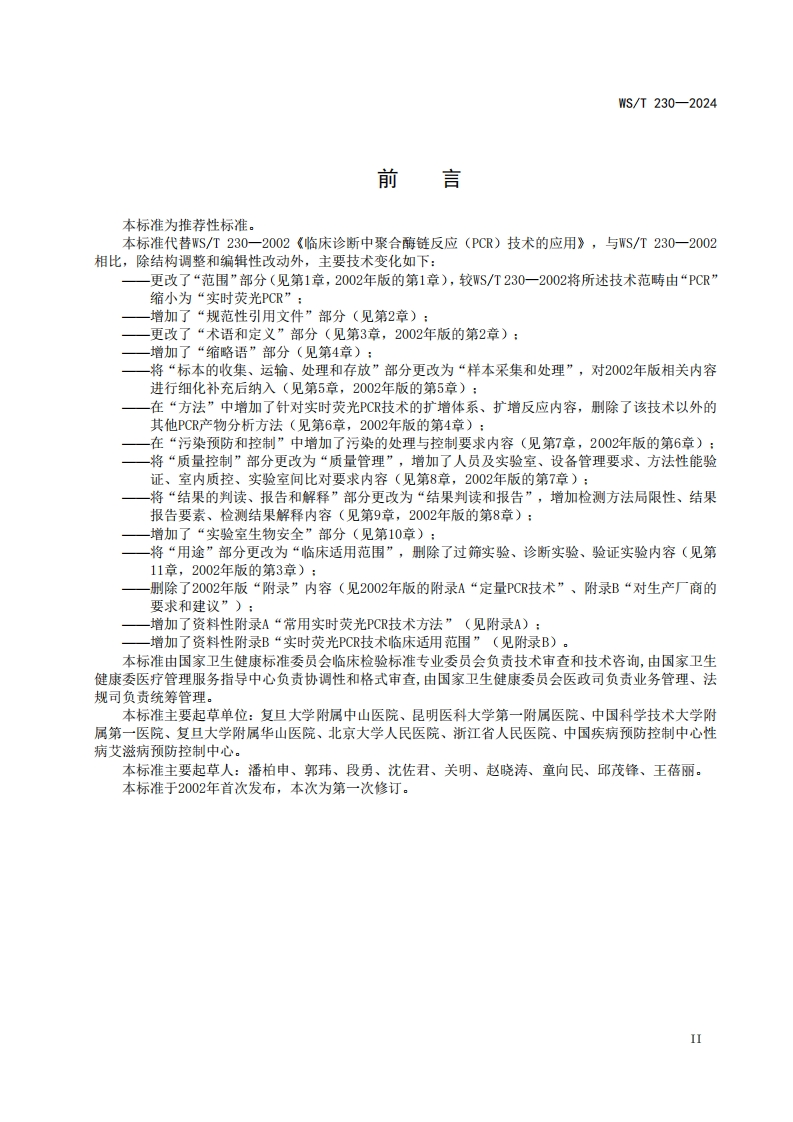 ICS11.020CCS C 50WS中华人民共和国卫生行业标准WS/T230—2024代替WS/T230-一2002实时荧光聚合酶链反应临床实验室应用指南Guidelines for implementation of real-time fluorescent polymerase chain reaction inclinical laboratories.2024-05-09发布2024-11-01实施中华人民共和国国家卫生健康委员会发布
