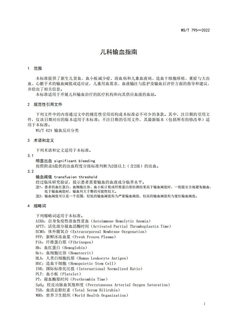 小儿输血指导原则348072@abc8天前发布关注私信0.40MB17页029小儿输血指导原则此内容为付费资源,请付费后查看¥13¥19黄金会员免费钻石会员免费立即购买您当前未登录!建议登陆后购买,可保存购买订单付费资源 第1页 / 共17页 第2页 / 共17页 第3页 / 共17页 第4页 / 共17页 第5页 / 共17页 试读已结束,还剩12页,您可下载完整版后进行离线阅读 THE END标准规范 文本预览 1Cs11.020CCS C 05WS中华人民共和国卫生行业标准WS/T795—2022儿科输血指南Guidel ine for pediatric transfusion2022-01-21发布2022-06-01实施中华人民共和国国家卫生健康委员会发布 查看更多 收起部分 喜欢就支持一下吧收藏