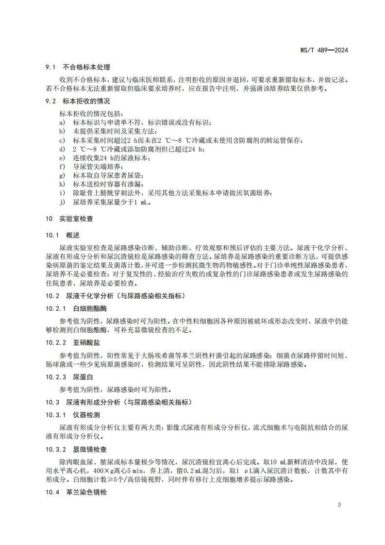 尿液标本临床微生物实验室检验操作指南Guidelinesforthetestingofurinespecimensintheclinicalmicrobiologylaboratory348072@abc9天前发布关注私信0.47MB12页041尿液标本临床微生物实验室检验操作指南Guidelinesforthetestingofurinespecimensintheclinicalmicrobiologylaboratory此内容为付费资源,请付费后查看¥13¥19黄金会员免费钻石会员免费立即购买您当前未登录!建议登陆后购买,可保存购买订单付费资源 第1页 / 共12页 第2页 / 共12页 第3页 / 共12页 第4页 / 共12页 第5页 / 共12页 试读已结束,还剩7页,您可下载完整版后进行离线阅读 THE END标准规范 文本预览 ICS11.020CCS C 50WS中华人民共和国卫生行业标准WS/T489-2024代替WS/T489一2016尿液标本临床微生物实验室检验操作指南Guidelines for the testing of urine specimens in the clinical microbiology laboratory2024-05-09发布2024-11-01实施中华人民共和国国家卫生健康委员会发布 查看更多 收起部分 喜欢就支持一下吧收藏