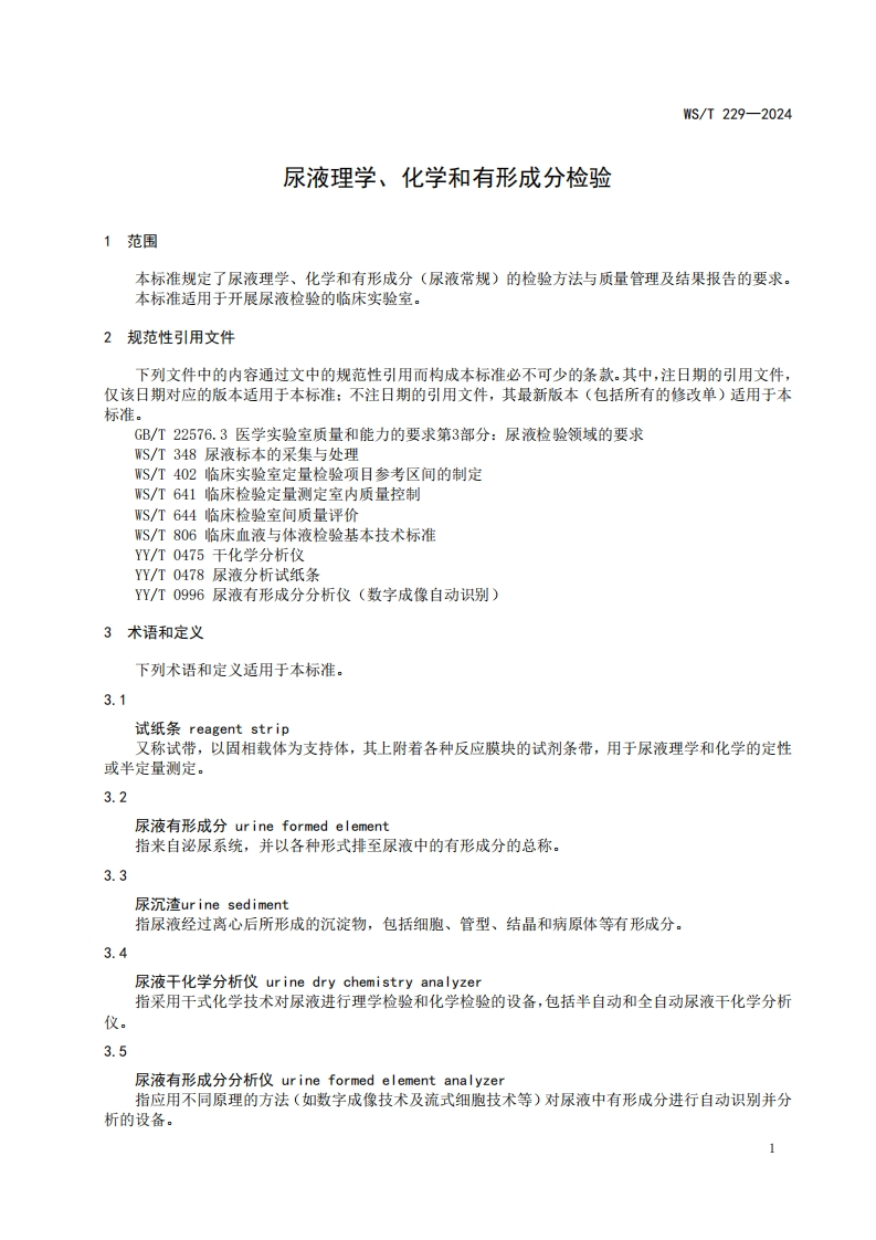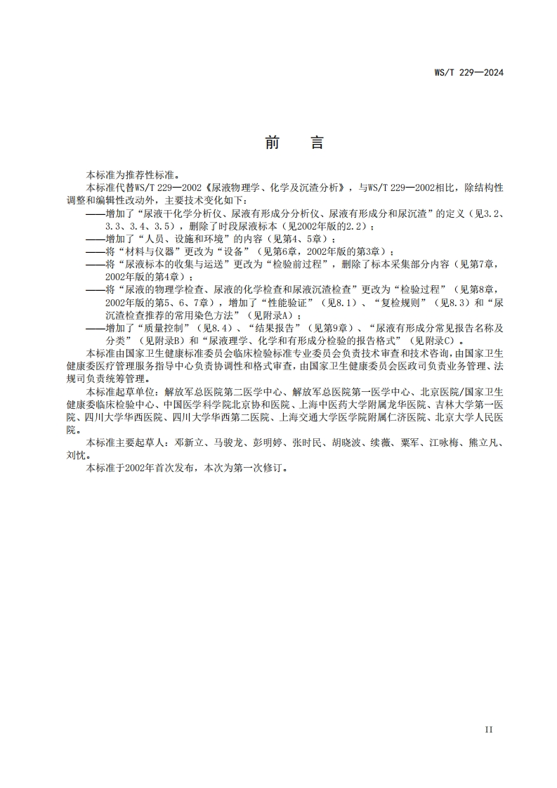 ICS11.020CCS C 50WS中华人民共和国卫生行业标准WS/T229-2024代替WS/T229一2002尿液理学、化学和有形成分检验Physical,chemical and morphological urine examination2024-05-09发布2024-11-01实施中华人民共和国国家卫生健康委员会发布