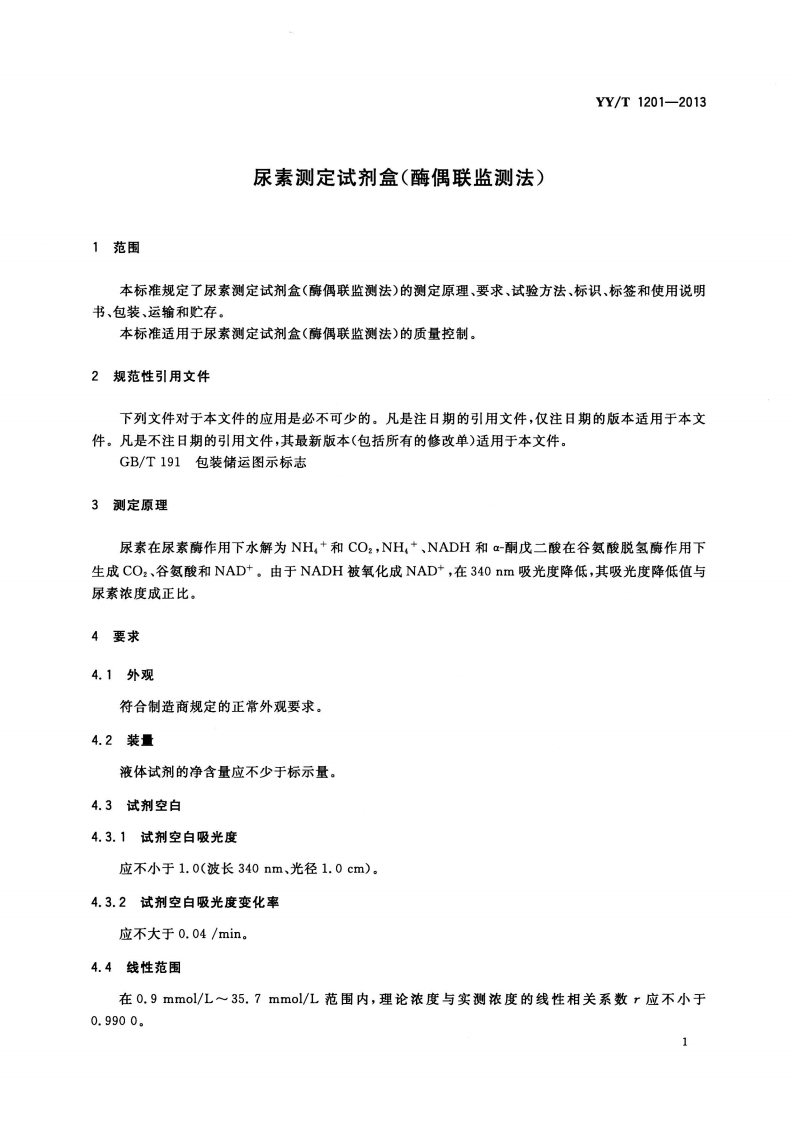 尿素检测试剂盒(酶偶联动态法)Ureadetectionkit(Enzymecouplingdynamicmethod)348072@abc9天前发布关注私信2.51MB12页050尿素检测试剂盒(酶偶联动态法)Ureadetectionkit(Enzymecouplingdynamicmethod)此内容为付费资源,请付费后查看¥13¥19黄金会员免费钻石会员免费立即购买您当前未登录!建议登陆后购买,可保存购买订单付费资源 第1页 / 共12页 第2页 / 共12页 第3页 / 共12页 第4页 / 共12页 第5页 / 共12页 试读已结束,还剩7页,您可下载完整版后进行离线阅读 THE END标准规范 文本预览 ICS11.100C44YY中华人民共和国医药行业标准YY/T1201-2013尿素测定试剂盒(酶偶联监测法)Urea assay kit (Enzyme coupling kinetic method)2013-10-21发布2014-10-01实施国家食品药品监督管理总局发布 查看更多 收起部分 喜欢就支持一下吧收藏