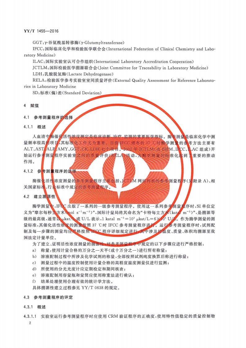 1CS11.100C44YY↓20中华人民共和国医药行业标准YY/T1455-2016应用参考测量程序对酶催化活性浓度赋值及其不确定度评定指南Guidelines for values assignment of catalytic activity concentrations of enzymesusing reference measurement procedures and evaluation of uncertainty2016-01-26发布2017-01-01实施国家食品药品监督管理总局发布Φ2