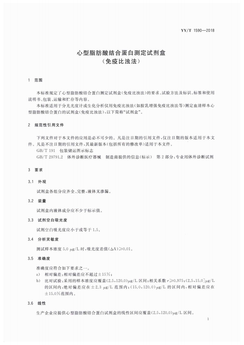 心型脂肪酸结合蛋自测定试剂盒免疫比浊法)Heart-typefattyacid-bindingproteintestingkit(immuneturbiditymethod)348072@abc10天前发布关注私信1.08MB8页049心型脂肪酸结合蛋自测定试剂盒免疫比浊法)Heart-typefattyacid-bindingproteintestingkit(immuneturbiditymethod)此内容为付费资源,请付费后查看¥13¥19黄金会员免费钻石会员免费立即购买您当前未登录!建议登陆后购买,可保存购买订单付费资源 第1页 / 共8页 第2页 / 共8页 第3页 / 共8页 第4页 / 共8页 第5页 / 共8页 试读已结束,还剩3页,您可下载完整版后进行离线阅读 THE END标准规范 文本预览 1CS11.100C441u7YY中华人民共和国医药行业标准YY/T1590-2018心型脂防酸结合蛋白测定试剂盒(免疫比浊法)Heart-type fatty acid-binding protein testing kit(immune turbidity method)2018-02-24发布2019-03-01实施国家食品药品监督管理总局Φ发布 查看更多 收起部分 喜欢就支持一下吧收藏