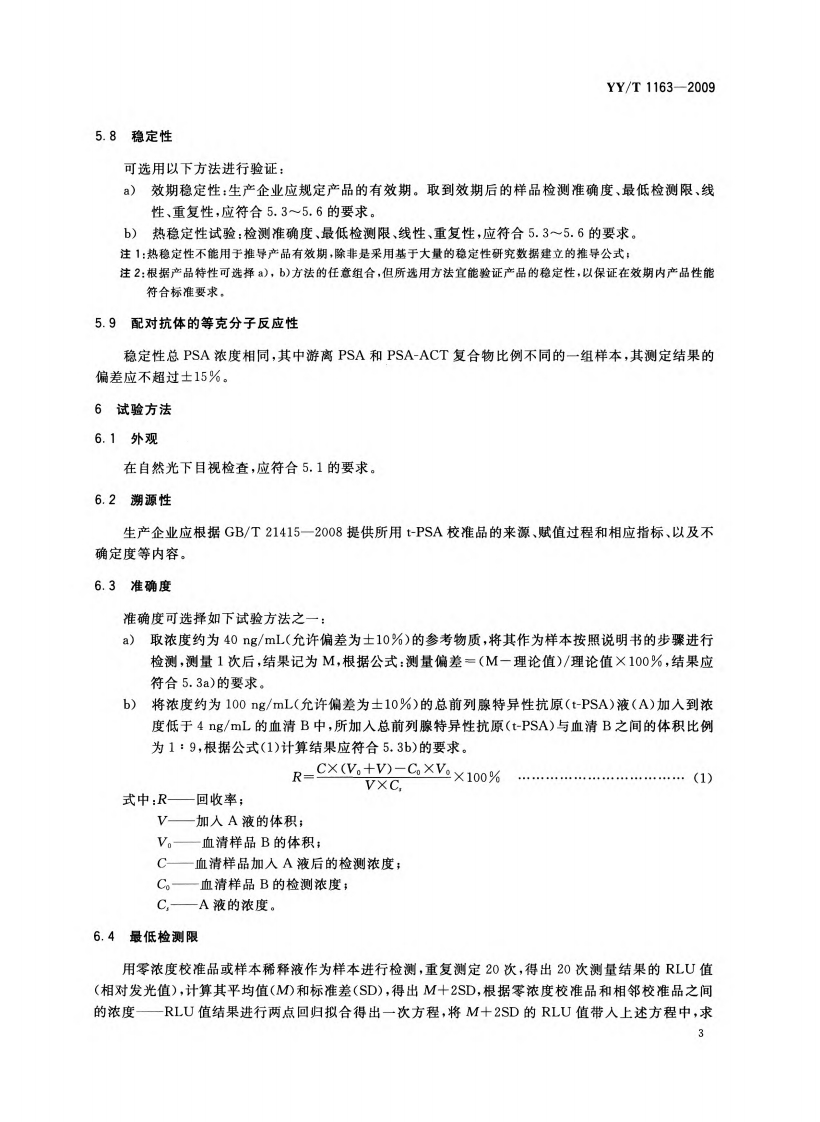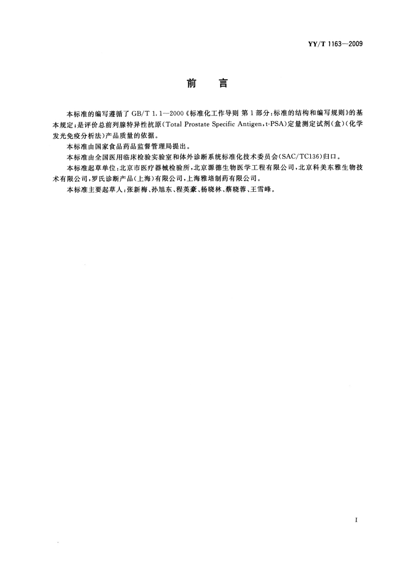 ICS11.100C44YY中华人民共和国医药行业标准YY/T1163-2009总前列腺特异性抗原(tPSA)定量测定试剂(盒)(化学发光免疫分析法)Total Prostate Specific Antigen(t-PSA)Quantitative Detection Reagent(Kit)Chemiluminescent Immunoassay)2009-12-30发布2011-06-01实施国家食品药品监督管理局发布