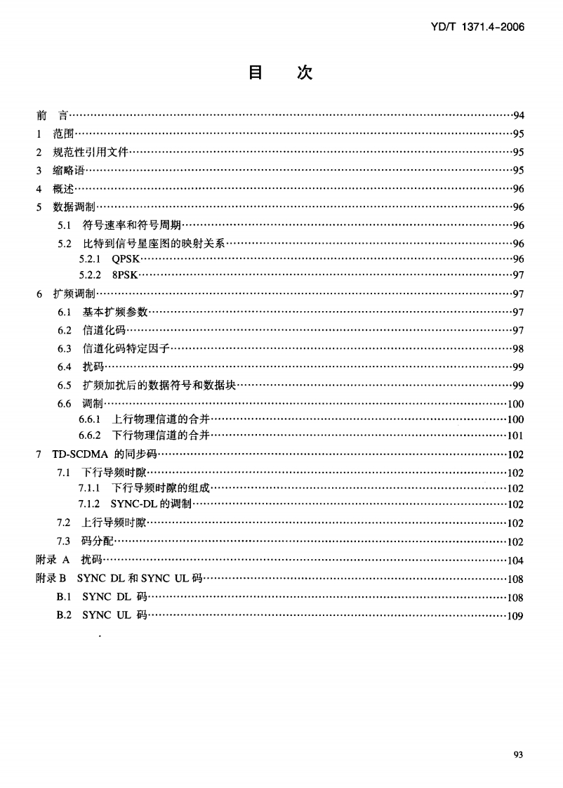 YD中华人民共和国通信行业标准YD/T1371.4-20062 GHz TD-SCDMA数字蜂窝移动通信网Uu接口物理层技术要求第四部分:扩频和调制Technical requirements for Uu Interface of 2GHz TD-SCDMADigital Cellular Mobile Communication Network Physical LayerTechnical Specification Part 4:Spreading and Modulation2006-01-20发布2006-01-20实施中华人民共和国信息产业部发布