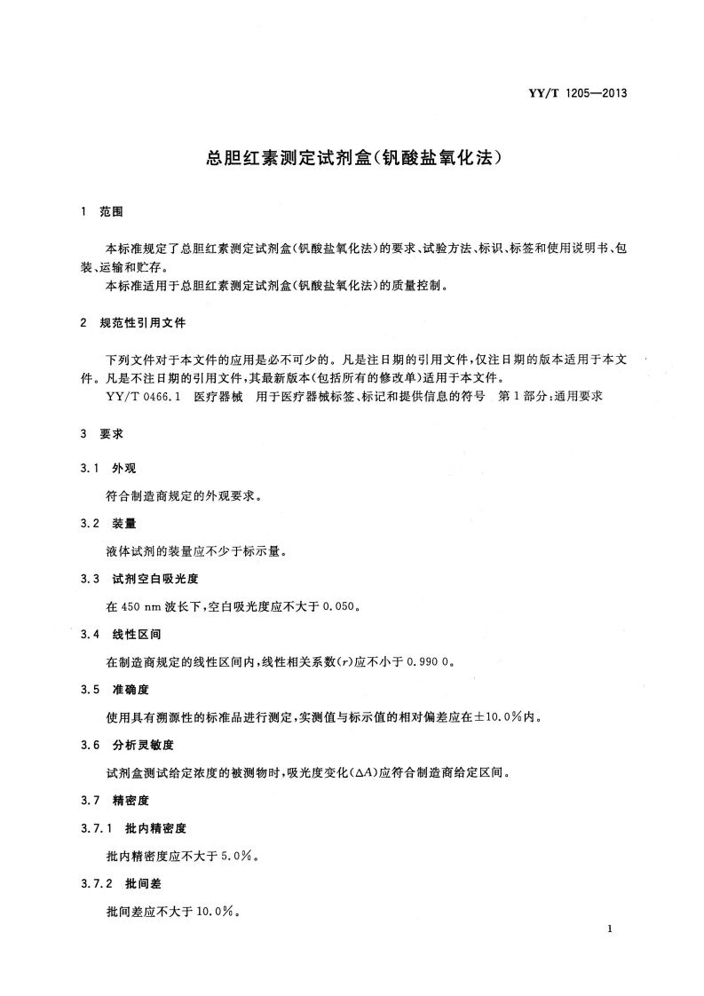 总胆红素检测试剂盒(钒酸盐氧化法)Totalbilirubindetectionkit(Vanadateoxidationmethod)348072@abc10天前发布关注私信2.05MB12页025总胆红素检测试剂盒(钒酸盐氧化法)Totalbilirubindetectionkit(Vanadateoxidationmethod)此内容为付费资源,请付费后查看¥13¥19黄金会员免费钻石会员免费立即购买您当前未登录!建议登陆后购买,可保存购买订单付费资源 第1页 / 共12页 第2页 / 共12页 第3页 / 共12页 第4页 / 共12页 第5页 / 共12页 试读已结束,还剩7页,您可下载完整版后进行离线阅读 THE END标准规范 文本预览 ICS11.100C44YY中华人民共和国医药行业标准YY/T1205-2013总胆红素测定试剂盒(钒酸盐氧化法)Total bilirubin test kit (Vanadate oxidation method)2013-10-21发布2014-10-01实施国家食品药品监督管理总局发布Φ 查看更多 收起部分 喜欢就支持一下吧收藏