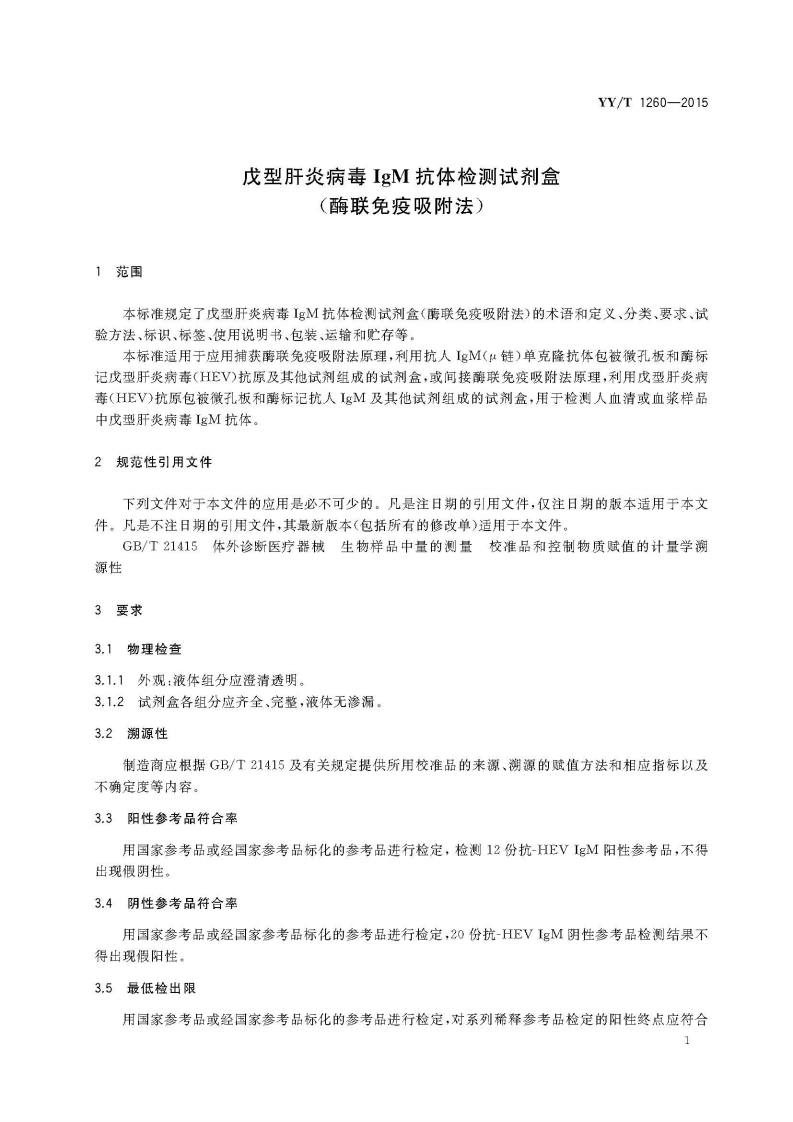 戊型肝炎病毒IgM抗体检测试剂盒酶联免疫吸附法)DiagnostickitforlgMantibodytohepatitisEvirus(ELISA)348072@abc10天前发布关注私信2.36MB7页048戊型肝炎病毒IgM抗体检测试剂盒酶联免疫吸附法)DiagnostickitforlgMantibodytohepatitisEvirus(ELISA)此内容为付费资源,请付费后查看¥13¥19黄金会员免费钻石会员免费立即购买您当前未登录!建议登陆后购买,可保存购买订单付费资源 第1页 / 共7页 第2页 / 共7页 第3页 / 共7页 第4页 / 共7页 第5页 / 共7页 试读已结束,还剩2页,您可下载完整版后进行离线阅读 THE END标准规范 文本预览 ICS11.100C44YY中华人民共和国医药行业标准YY/T1260-2015戊型肝炎病毒IgM抗体检测试剂盒(酶联免疫吸附法)Diagnostic kit for IgM antibody to hepatitis E virus(ELISA)2015-03-02发布2016-01-01实施国家食品药品监督管理总局发布 查看更多 收起部分 喜欢就支持一下吧收藏