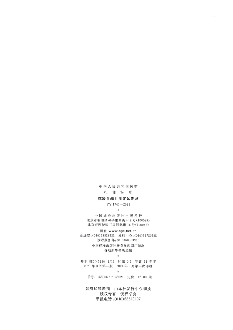 抗凝血酶检测试剂盒Anticoagulantthrombindetectionkit348072@abc10天前发布关注私信2.56MB8页028抗凝血酶检测试剂盒Anticoagulantthrombindetectionkit此内容为付费资源,请付费后查看¥13¥19黄金会员免费钻石会员免费立即购买您当前未登录!建议登陆后购买,可保存购买订单付费资源 第1页 / 共8页 第2页 / 共8页 第3页 / 共8页 第4页 / 共8页 第5页 / 共8页 试读已结束,还剩3页,您可下载完整版后进行离线阅读 THE END标准规范 文本预览 I1CS11.040C44YY中华人民共和国医药行业标准YY1741-2021抗凝血酶Ⅲ测定试剂盒Antithrombin II testing kit2021-03-09发布2023-04-01实施国家药品监督管理局发布Φ 查看更多 收起部分 喜欢就支持一下吧收藏
