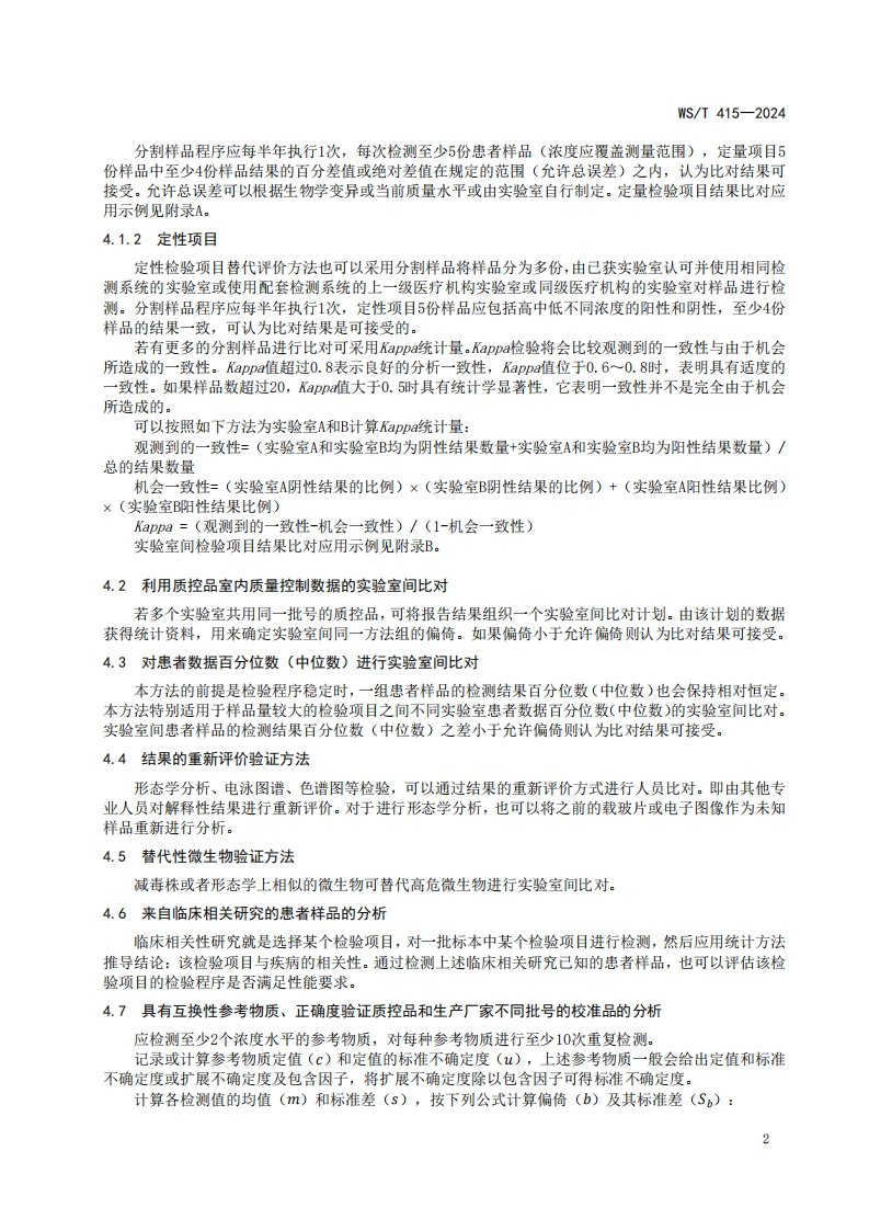 ICS11.020CCS C 50WS中华人民共和国卫生行业标准WS/T415-2024代替WS/T415一2013无室间质量评价时的临床检验质量评价Quality assessment for clinical laboratory testing when external quality assessment isnot available2024-05-09发布2024-11-01实施中华人民共和国国家卫生健康委员会发布