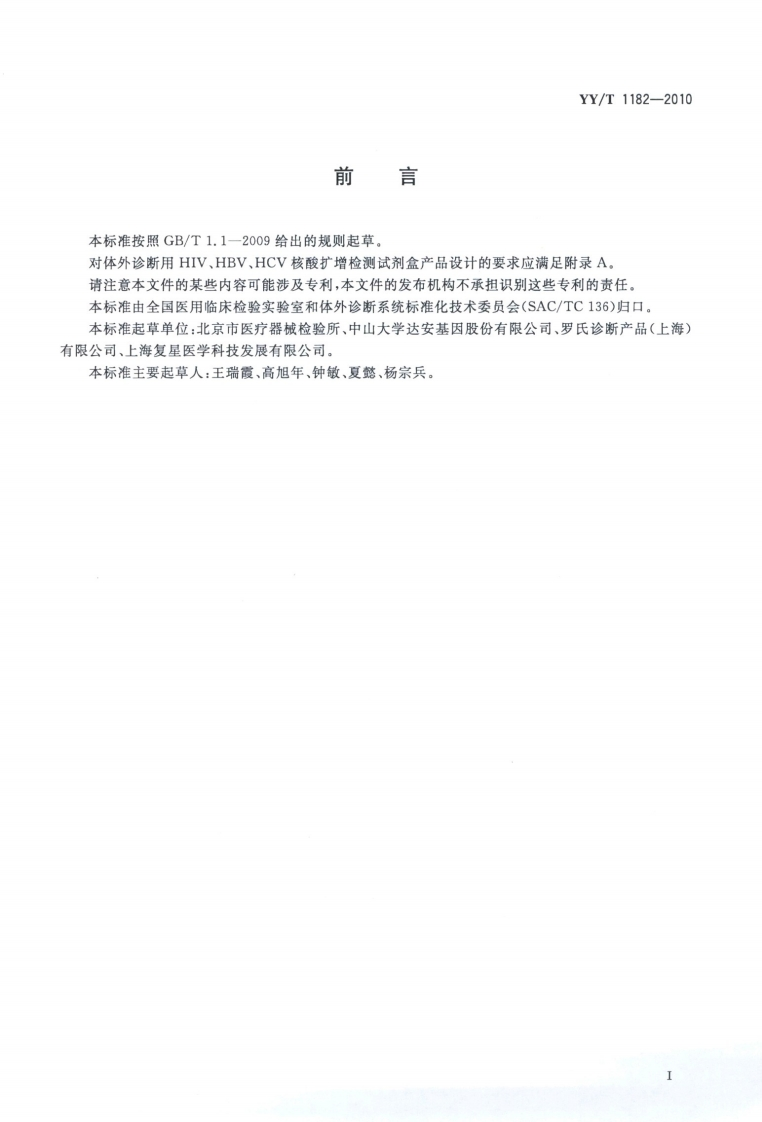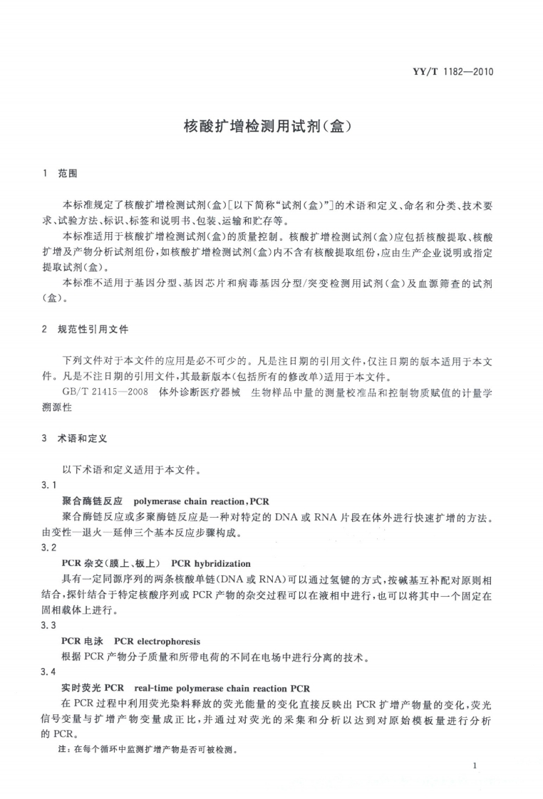 核酸扩增检测用试剂(盒)Nucleicacidsamplificationtestreagents(kits)发布2012-06-01实施国家食品药品监督管理局发布348072@abc10天前发布关注私信3.57MB12页038核酸扩增检测用试剂(盒)Nucleicacidsamplificationtestreagents(kits)发布2012-06-01实施国家食品药品监督管理局发布此内容为付费资源,请付费后查看¥13¥19黄金会员免费钻石会员免费立即购买您当前未登录!建议登陆后购买,可保存购买订单付费资源 第1页 / 共12页 第2页 / 共12页 第3页 / 共12页 第4页 / 共12页 第5页 / 共12页 试读已结束,还剩7页,您可下载完整版后进行离线阅读 THE END标准规范 文本预览 ICS11.100C44YY中华人民共和国医药行业标准YY/T1182-2010核酸扩增检测用试剂(盒)Nucleic acids amplification test reagents(kits)2010-12-27发布2012-06-01实施数码防国家食品药品监督管理局发布 查看更多 收起部分 喜欢就支持一下吧收藏