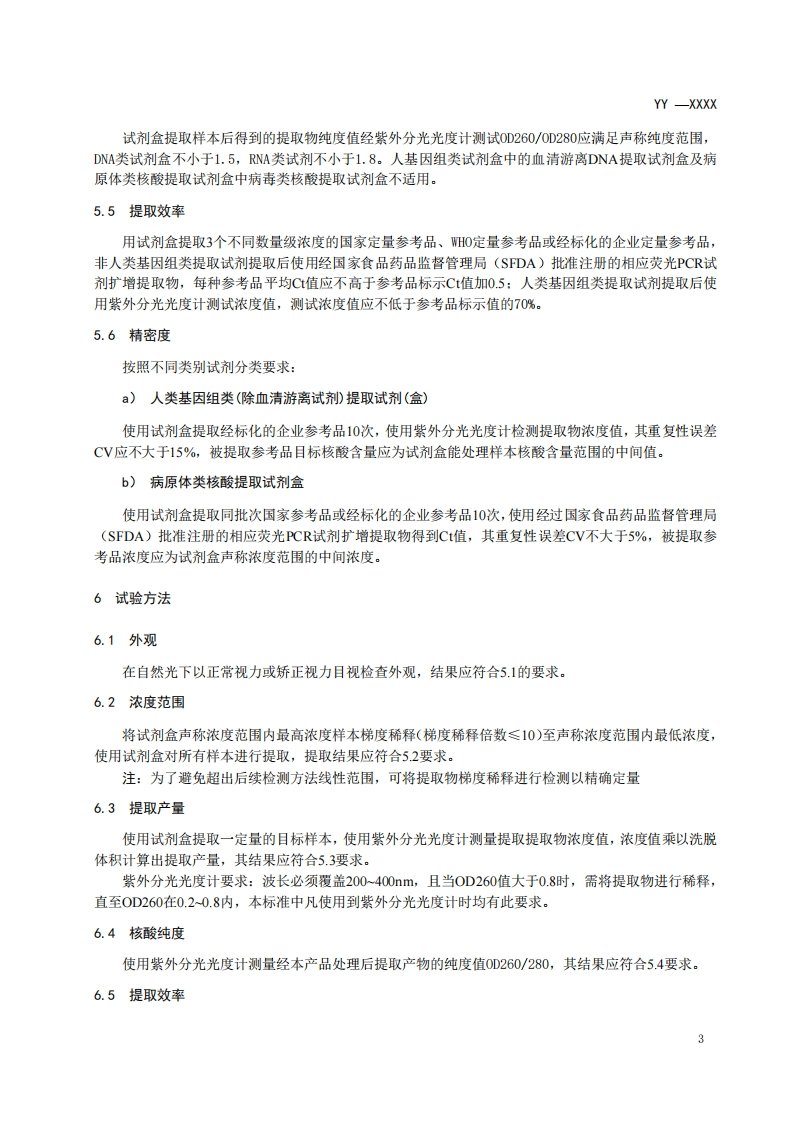 核酸提取试剂盒(磁珠法)NucleicacidextractionandpurificationKit(Magneticbeadsmethod)(征求意见稿)348072@abc9天前发布关注私信0.67MB13页040核酸提取试剂盒(磁珠法)NucleicacidextractionandpurificationKit(Magneticbeadsmethod)(征求意见稿)此内容为付费资源,请付费后查看¥13¥19黄金会员免费钻石会员免费立即购买您当前未登录!建议登陆后购买,可保存购买订单付费资源 第1页 / 共13页 第2页 / 共13页 第3页 / 共13页 第4页 / 共13页 第5页 / 共13页 试读已结束,还剩8页,您可下载完整版后进行离线阅读 THE END标准规范 文本预览 ICS11.100C44中华人民共和国医药行业标准YY一XXXX核酸提取试剂盒(磁珠法)Nucleic acid extraction and purification Kit (Magnetic beads method)(征求意见稿)XXXX-XX-XX发布XXXX-XX-XX实施发布 查看更多 收起部分 喜欢就支持一下吧收藏