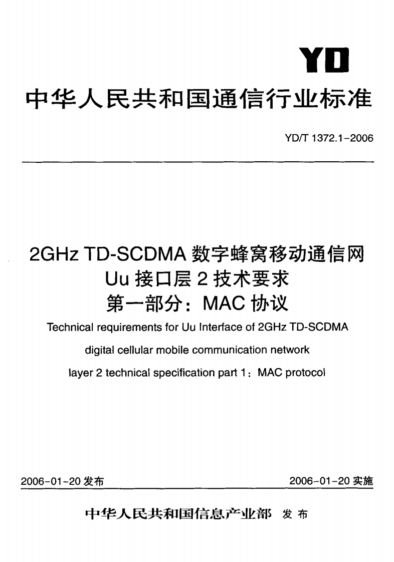 YD-T1372.1-2006348072@abc4个月前发布关注私信0.85MB28页031YD-T1372.1-2006此内容为付费资源,请付费后查看¥21¥31黄金会员免费钻石会员免费立即购买您当前未登录!建议登陆后购买,可保存购买订单付费资源 第1页 / 共28页 第2页 / 共28页 试读已结束,还剩26页,您可下载完整版后进行离线阅读 THE END标准规范 文本预览 YD中华人民共和国通信行业标准YD/T1372.1-2006YD/T1372.2-20062 GHz TD-SCDMA数字蜂窝移动通信网Uu接口层2技术要求(第一部分至第二部分)2006-01-20发布2006-01-20实施中华人民共和国信息产业部发布 查看更多 收起部分 喜欢就支持一下吧收藏