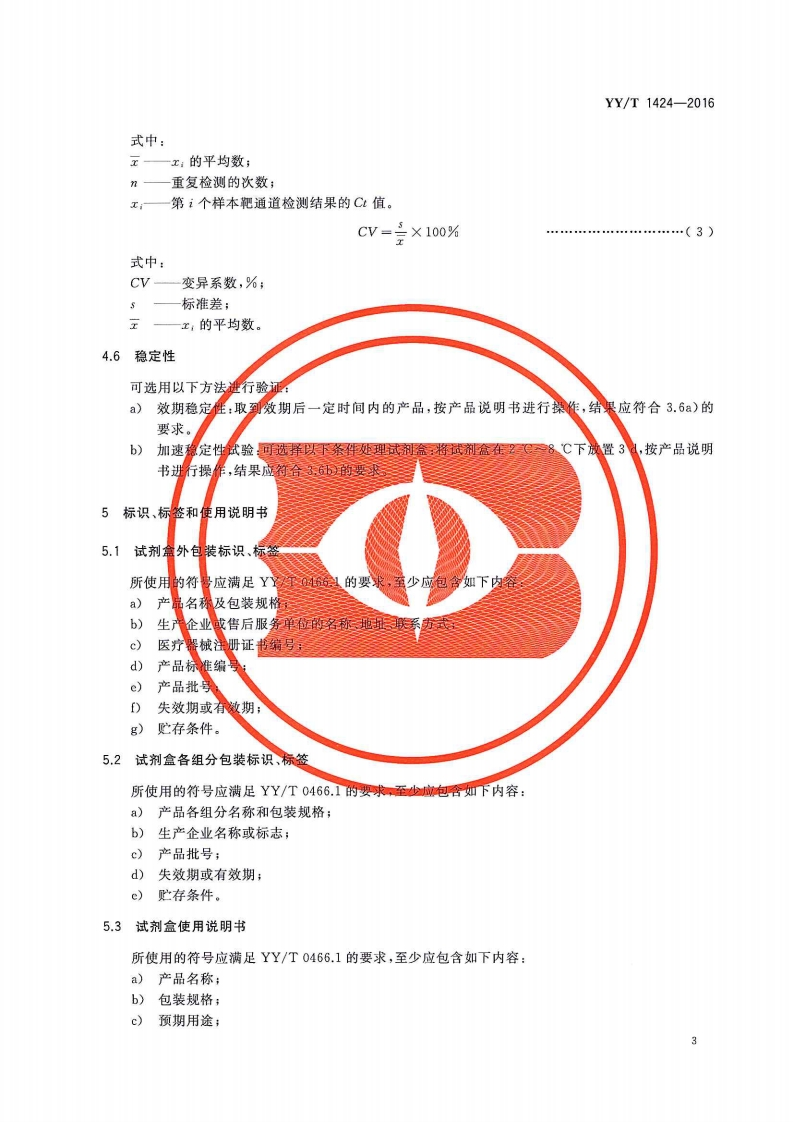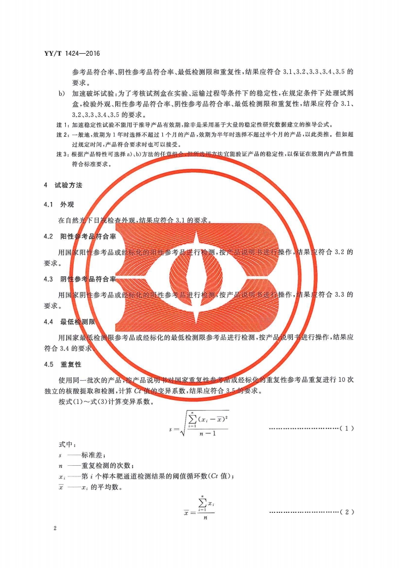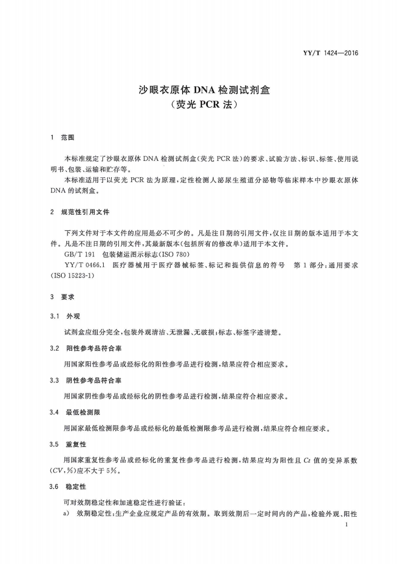 沙眼衣原体脱氧核糖核酸检测试剂盒荧光聚合酶链式反应法Chlamydiatrachomatisdeoxyribonucleicaciddetectionkit(fluorescentpolymerasechainreaction)348072@abc9天前发布关注私信1.26MB8页033沙眼衣原体脱氧核糖核酸检测试剂盒荧光聚合酶链式反应法Chlamydiatrachomatisdeoxyribonucleicaciddetectionkit(fluorescentpolymerasechainreaction)此内容为付费资源,请付费后查看¥13¥19黄金会员免费钻石会员免费立即购买您当前未登录!建议登陆后购买,可保存购买订单付费资源 第1页 / 共8页 第2页 / 共8页 第3页 / 共8页 第4页 / 共8页 第5页 / 共8页 试读已结束,还剩3页,您可下载完整版后进行离线阅读 THE END标准规范 文本预览 1CS11.100C44139YY中华人民共和国医药行业标准YY/T1424-2016沙眼衣原体DNA检测试剂盒(荧光PCR法)Chlamydia trachomatis DNA detection kit (fluorescent PCR)2016-01-26发布2017-01-01实施国家食品药品监督管理总局发布 查看更多 收起部分 喜欢就支持一下吧收藏