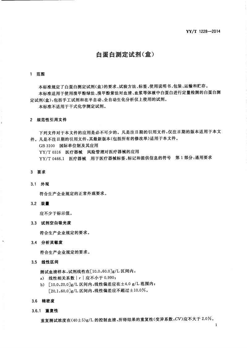 清蛋白检测试剂套装Albumindetectionreagentset348072@abc9天前发布关注私信0.38MB12页045清蛋白检测试剂套装Albumindetectionreagentset此内容为付费资源,请付费后查看¥13¥19黄金会员免费钻石会员免费立即购买您当前未登录!建议登陆后购买,可保存购买订单付费资源 第1页 / 共12页 第2页 / 共12页 第3页 / 共12页 第4页 / 共12页 第5页 / 共12页 试读已结束,还剩7页,您可下载完整版后进行离线阅读 THE END标准规范 文本预览 ICS11.100C44YY中华人民共和国医药行业标准YY/T1228-2014白蛋白测定试剂(盒)Albumin test reagent kit2014-06-17发布2015-07-01实施国家食品药品监督管理总局发布 查看更多 收起部分 喜欢就支持一下吧收藏