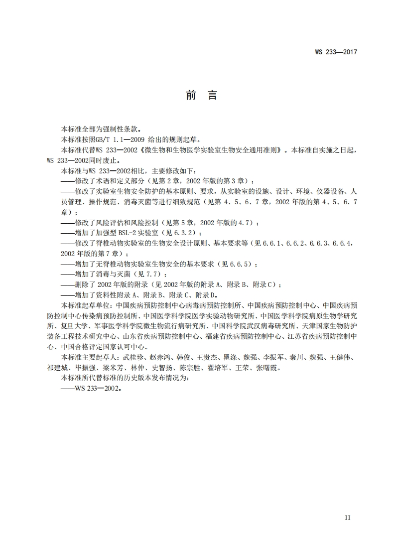 病原微生物实验室生物安全通用准则Generalbiosafetystandardforcausativebacterialaboratories348072@abc7天前发布关注私信0.60MB37页040病原微生物实验室生物安全通用准则Generalbiosafetystandardforcausativebacterialaboratories此内容为付费资源,请付费后查看¥13¥19黄金会员免费钻石会员免费立即购买您当前未登录!建议登陆后购买,可保存购买订单付费资源 第1页 / 共37页 第2页 / 共37页 第3页 / 共37页 第4页 / 共37页 第5页 / 共37页 试读已结束,还剩32页,您可下载完整版后进行离线阅读 THE END标准规范 文本预览 ICS11.020C59WS中华人民共和国卫生行业标准WS233-2017代替S233-2002病原微生物实验室生物安全通用准则General biosafety standard for causative bacteria laboratories2017-07-24发布2018-02-01实施中华人民共和国国家卫生和计划生育委员会发布 查看更多 收起部分 喜欢就支持一下吧收藏
