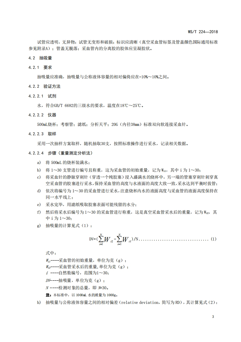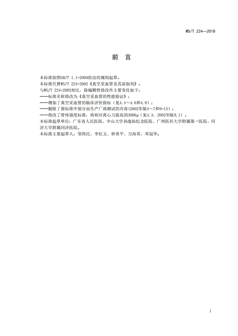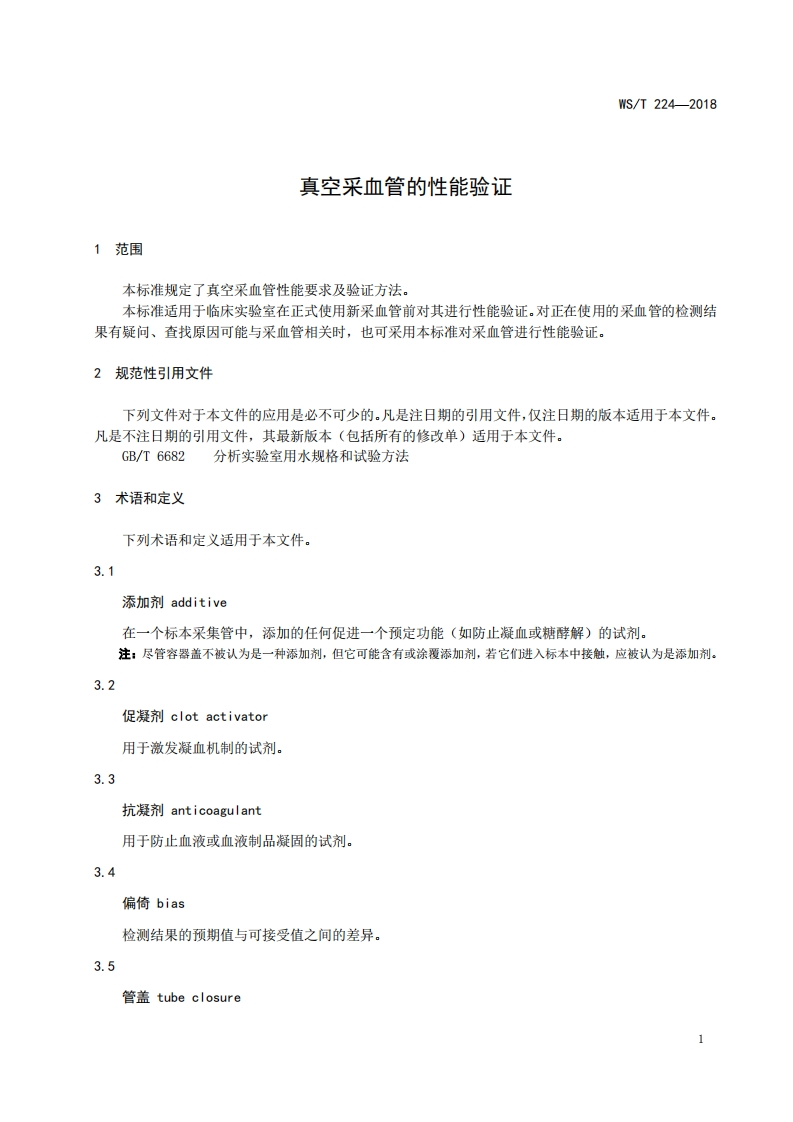 真空采血试管的性能验证Performancevalidationofvacuumcollectiontubesforvenousbloodsamples348072@abc7天前发布关注私信0.41MB14页047真空采血试管的性能验证Performancevalidationofvacuumcollectiontubesforvenousbloodsamples此内容为付费资源,请付费后查看¥13¥19黄金会员免费钻石会员免费立即购买您当前未登录!建议登陆后购买,可保存购买订单付费资源 第1页 / 共14页 第2页 / 共14页 第3页 / 共14页 第4页 / 共14页 第5页 / 共14页 试读已结束,还剩9页,您可下载完整版后进行离线阅读 THE END标准规范 文本预览 ICS11.020C50中华人民共和国卫生行业标准WS/T224-2018代替WS/T224一2002真空采血管的性能验证Performance verification of vacuum tubes for venous blood specimen2018-04-27发布2018-11-01实施中华人民共和国国家卫生健康委员会发布 查看更多 收起部分 喜欢就支持一下吧收藏