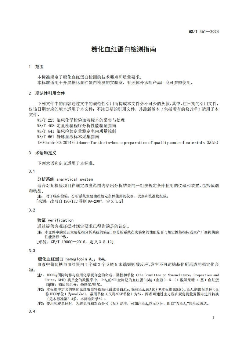 糖化血红蛋白测定指南Guidelinefordeterminationofglycatedhemoglobin348072@abc6天前发布关注私信0.35MB14页033糖化血红蛋白测定指南Guidelinefordeterminationofglycatedhemoglobin此内容为付费资源,请付费后查看¥13¥19黄金会员免费钻石会员免费立即购买您当前未登录!建议登陆后购买,可保存购买订单付费资源 第1页 / 共14页 第2页 / 共14页 第3页 / 共14页 第4页 / 共14页 第5页 / 共14页 试读已结束,还剩9页,您可下载完整版后进行离线阅读 THE END标准规范 文本预览 ICS11.020CCS C 50WS中华人民共和国卫生行业标准WS/T461-2024代替WS/T461一2015糖化血红蛋白检测指南Guideline for measurement of hemoglobin Aic2024-05-09发布2024-11-01实施中华人民共和国国家卫生健康委员会发布 查看更多 收起部分 喜欢就支持一下吧收藏