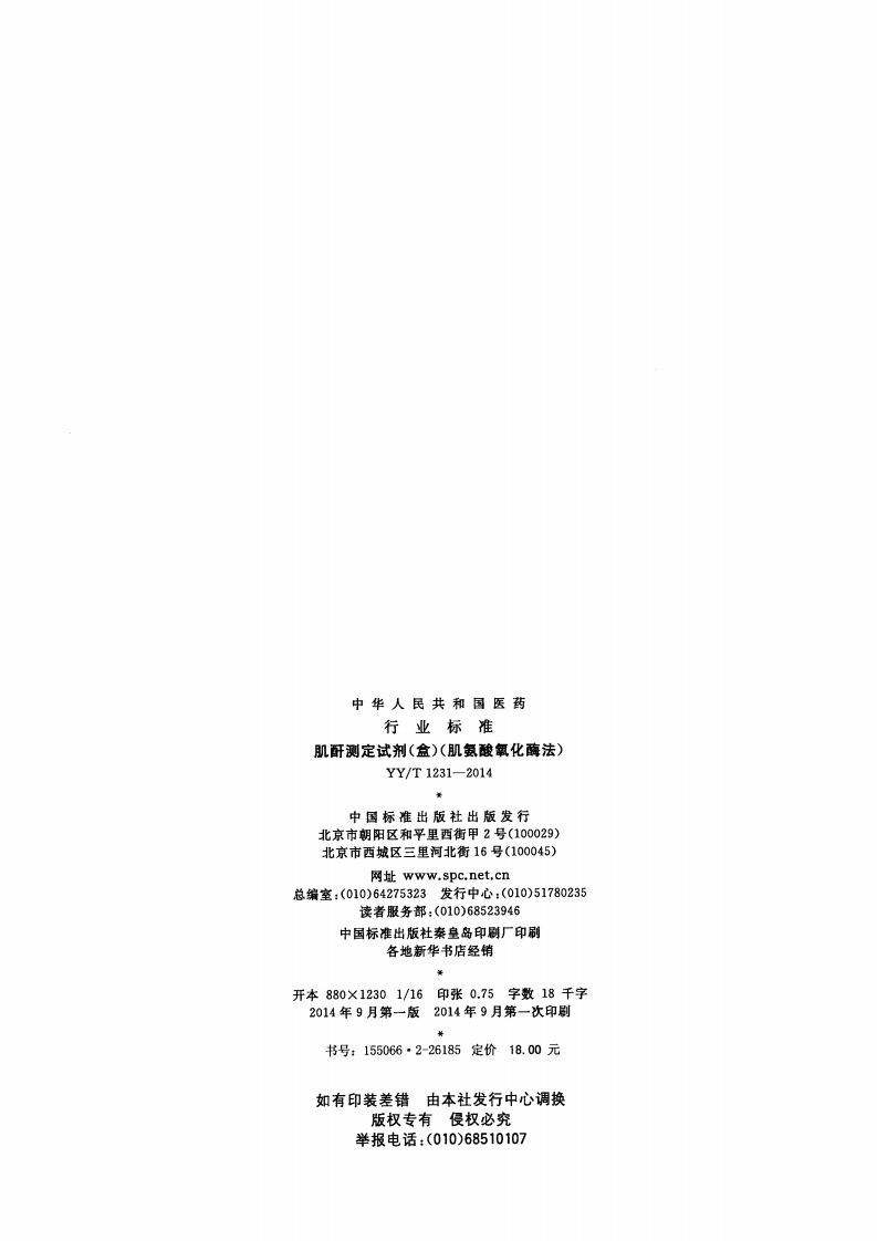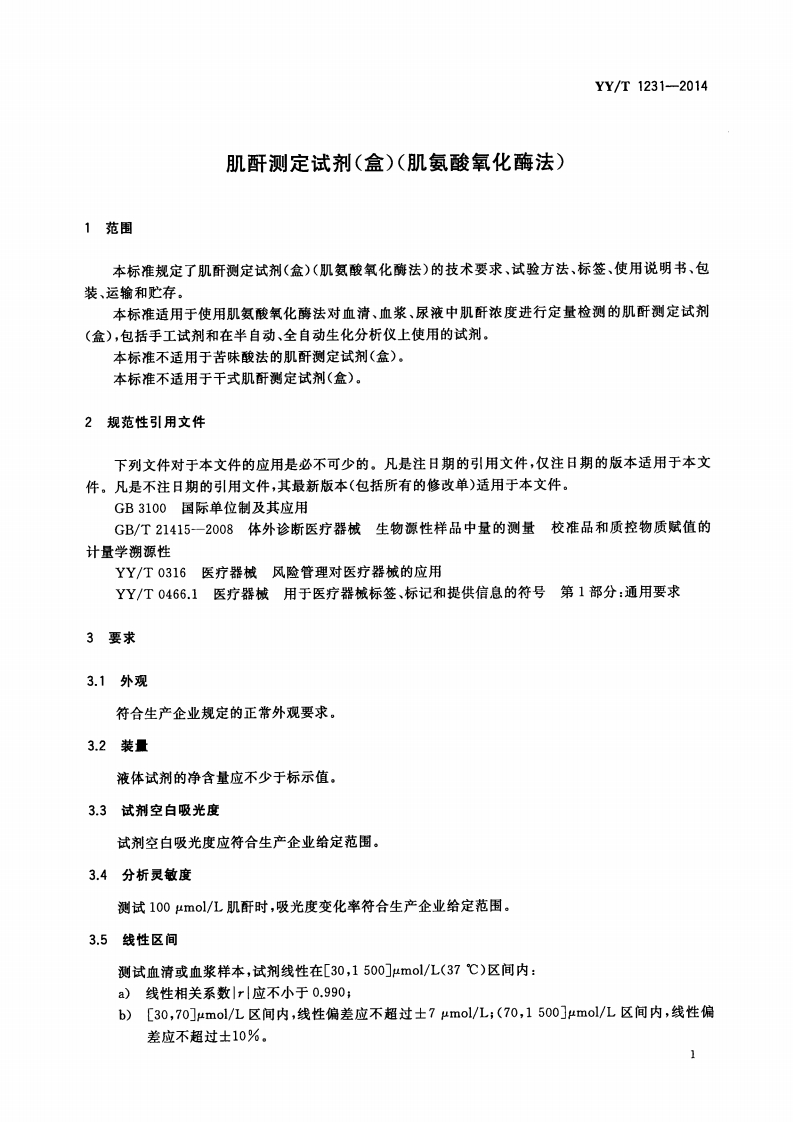 肌酐测定试剂(盒)(肌氨酸氧化酶法)Creatininetestreagentkit(Methodofsarcosineoxidase)348072@abc6天前发布关注私信2.85MB11页049肌酐测定试剂(盒)(肌氨酸氧化酶法)Creatininetestreagentkit(Methodofsarcosineoxidase)此内容为付费资源,请付费后查看¥13¥19黄金会员免费钻石会员免费立即购买您当前未登录!建议登陆后购买,可保存购买订单付费资源 第1页 / 共11页 第2页 / 共11页 第3页 / 共11页 第4页 / 共11页 第5页 / 共11页 试读已结束,还剩6页,您可下载完整版后进行离线阅读 THE END标准规范 文本预览 C41.10YY中华人民共和国医药行业标准YY/T1231-2014肌酐测定试剂(盒)(肌氨酸氧化酶法)Creatinine test reagent kit(Method of sarcosine oxidase)2014-06-17发布2015-07-01实施国家食品药品监督管理总局发布涂在真伪 查看更多 收起部分 喜欢就支持一下吧收藏