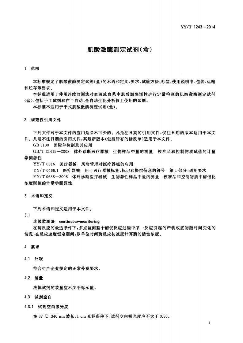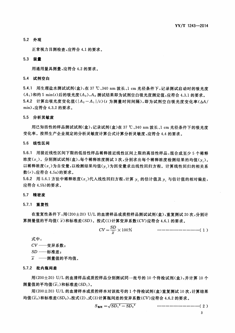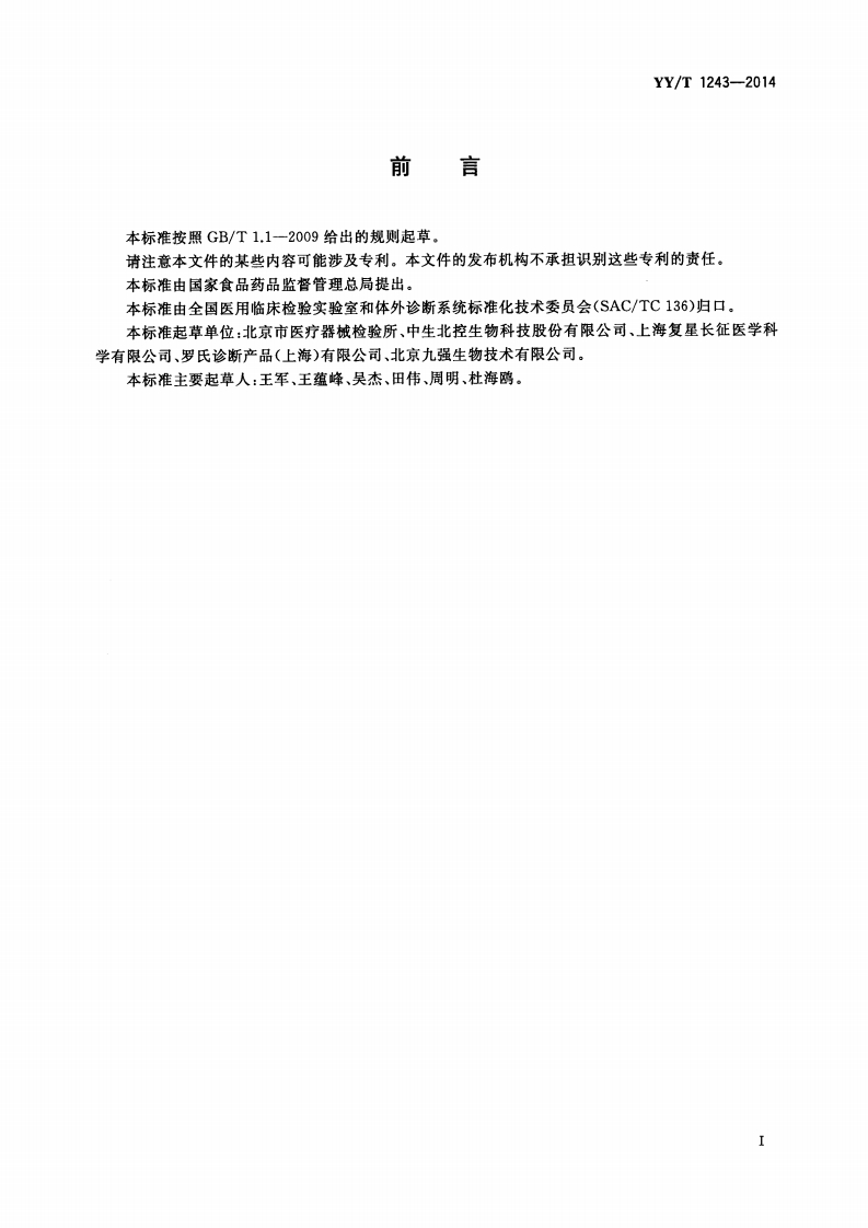 肌酸磷酸激酶检测试剂(盒)Creatinephosphokinasedetectionreagent(kit)348072@abc6天前发布关注私信5.46MB12页034肌酸磷酸激酶检测试剂(盒)Creatinephosphokinasedetectionreagent(kit)此内容为付费资源,请付费后查看¥13¥19黄金会员免费钻石会员免费立即购买您当前未登录!建议登陆后购买,可保存购买订单付费资源 第1页 / 共12页 第2页 / 共12页 第3页 / 共12页 第4页 / 共12页 第5页 / 共12页 试读已结束,还剩7页,您可下载完整版后进行离线阅读 THE END标准规范 文本预览 ICS11.100C44YY中华人民共和国医药行业标准YY/T1243-2014肌酸激酶测定试剂(盒)Creatine kinase test reagent(kit)2014-06-17发布2015-07-01实施国家食品药品监督管理总局发布 查看更多 收起部分 喜欢就支持一下吧收藏